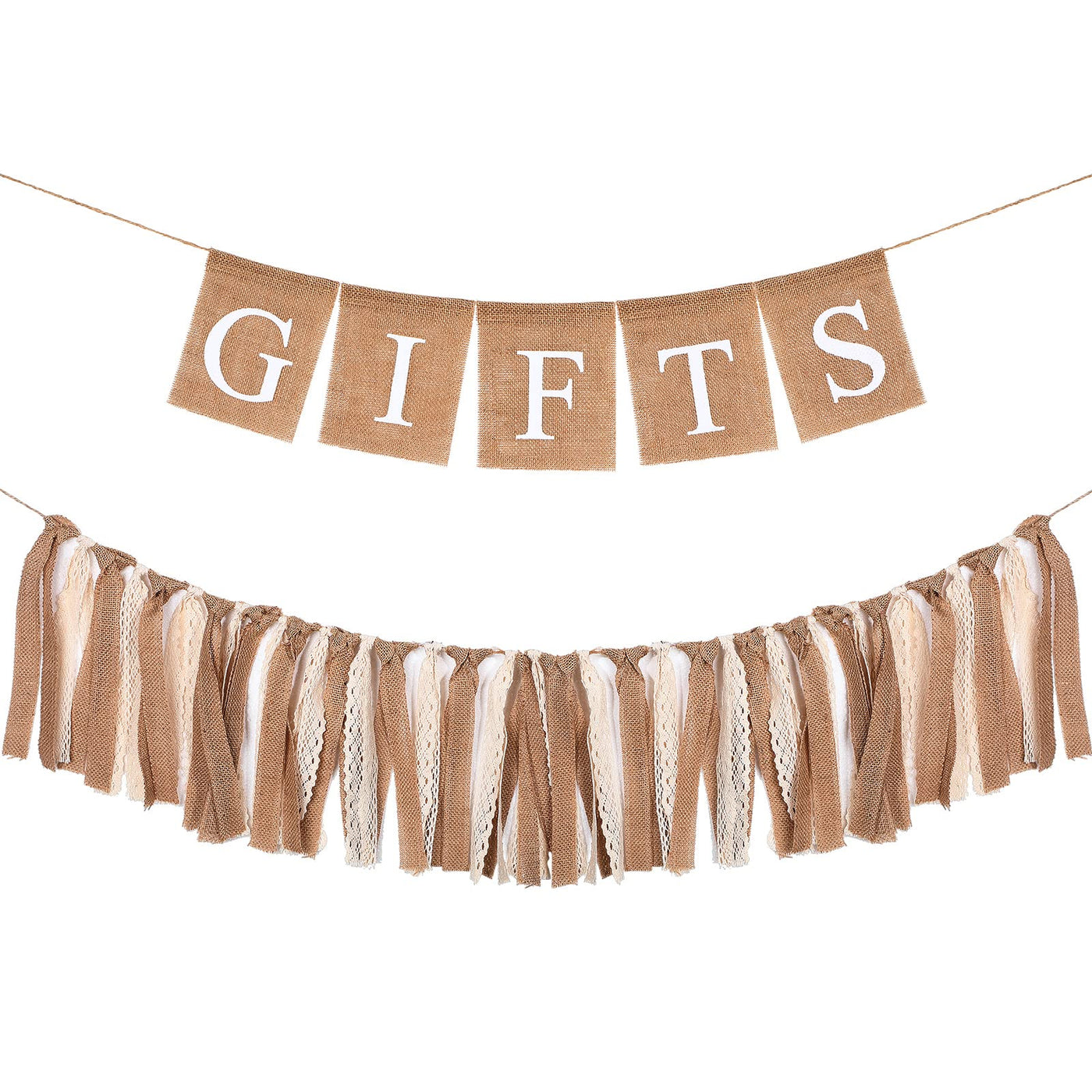 2 Pcs Boho Burlap Banner Baby Shower Decorations Set Include Rustic Gift Banner Decor Bunting Sign Bunting Gifts Sign Burlap Lac