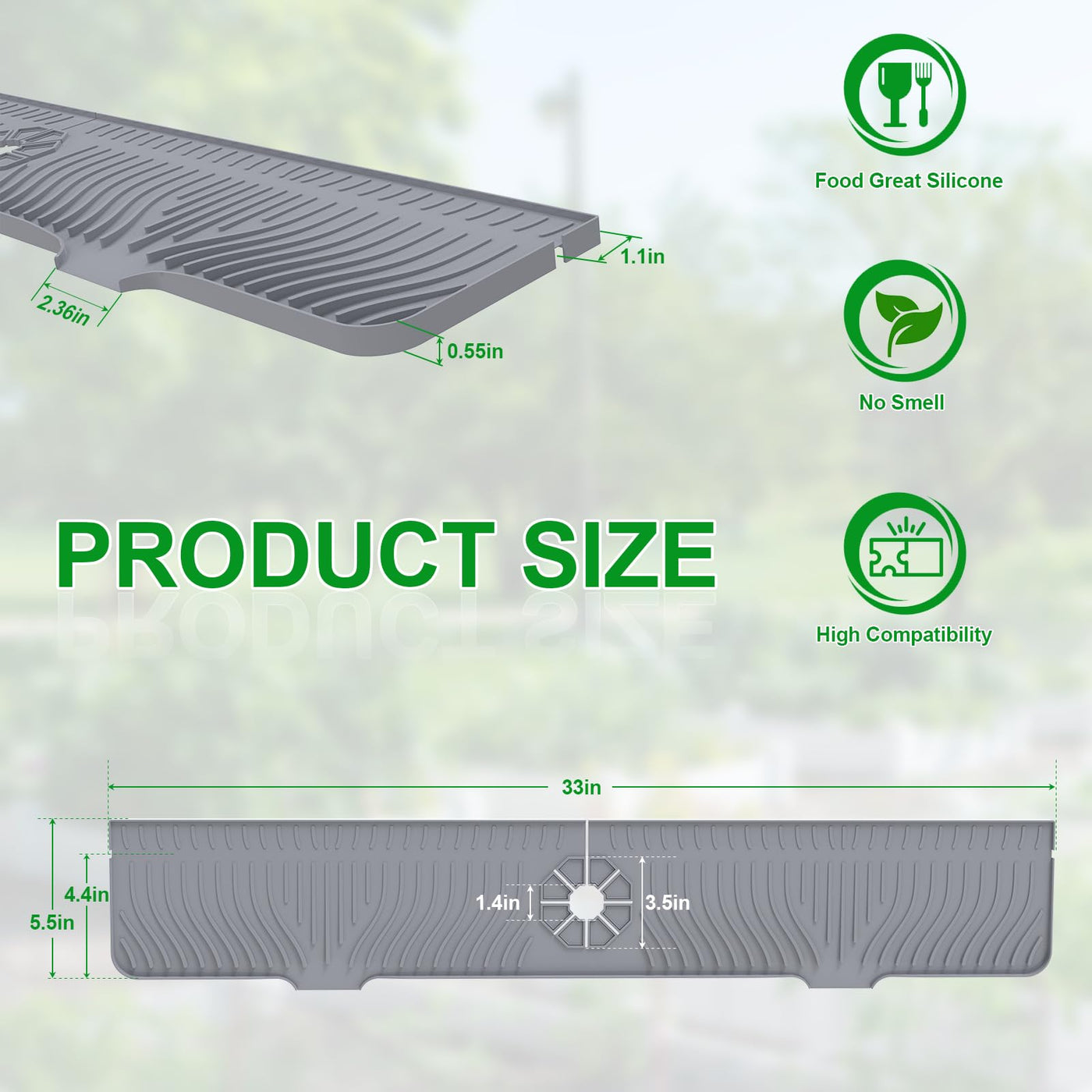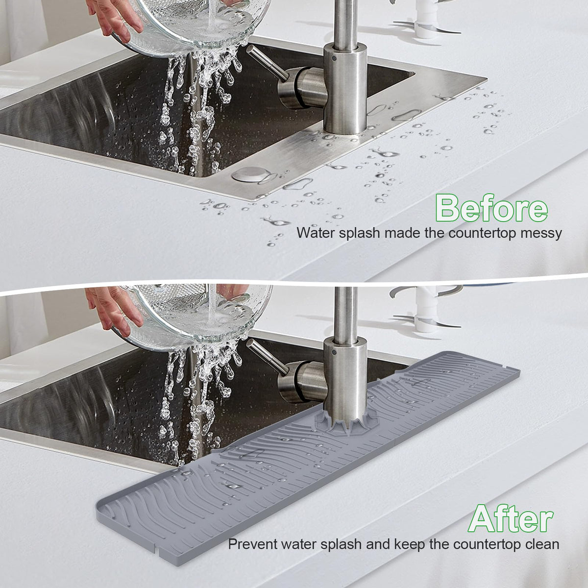 33Inch Kitchen Sink Splash Guard Mat,Silicone Material Protects Faucet Handle From Dripping Water,Faucet Mat Splash Catcher,Mult