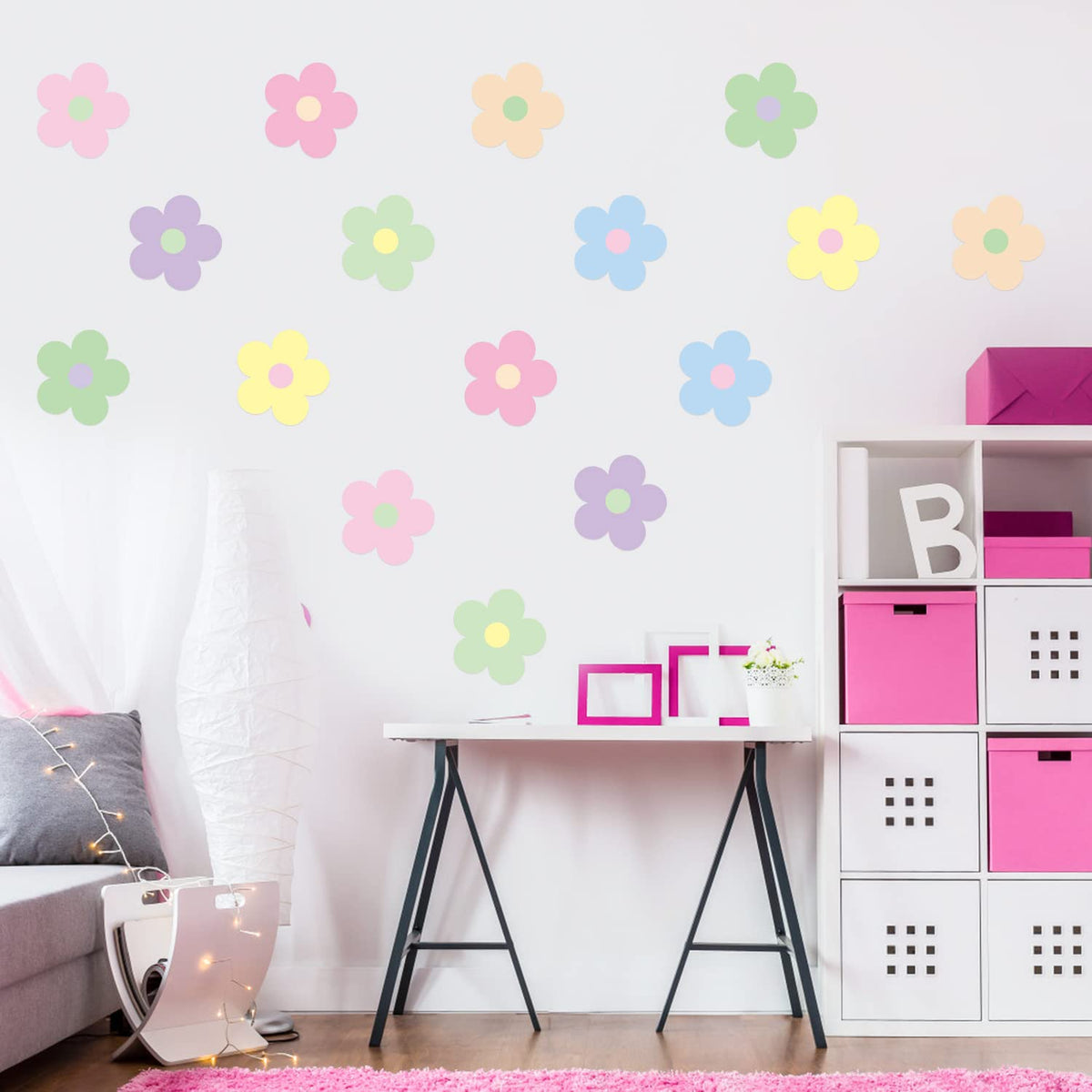 A1Diee 16Pcs Danish Pastel Aesthetic Cute Flowers Wall Decal Preppy Hippie Trendy Wall Art Decor Vinyl Peel And Stick Kidcore Ae