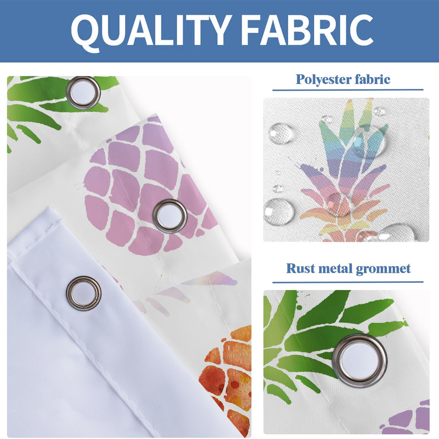 - Q: What type of decor style does this shower curtain fit? A: The colorful pineapple design makes it suitable for modern, boho, and tropical decor styles, particularly in children's or teen bathrooms.