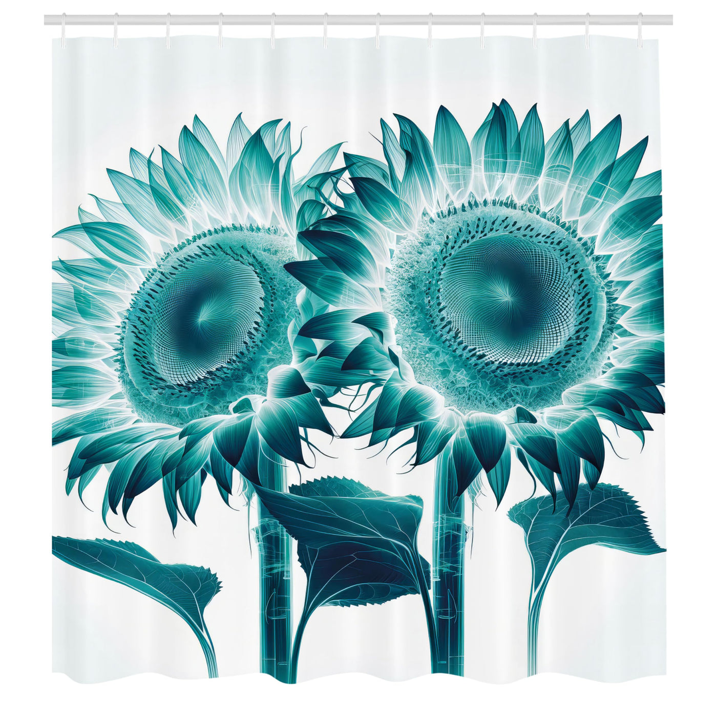 Ambesonne Teal Shower Curtain, Futurist Sunflowers Illustration With Dreamy Cyberworld Colors Fantasy, Cloth Fabric Bathroom Dec