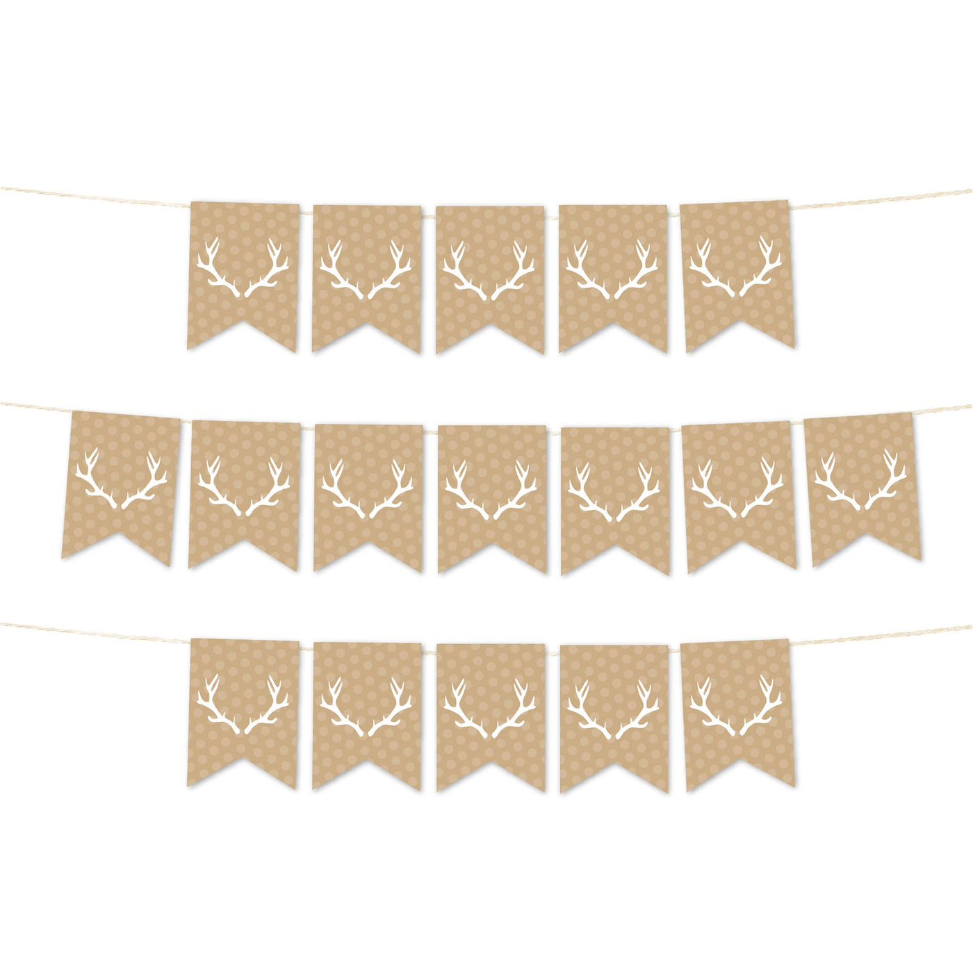 Andaz Press Hanging Pennant Party Banner With String, Tan Deer Antlers, 9-Feet, 1-Set, Decor Paper Decorations, Includes String