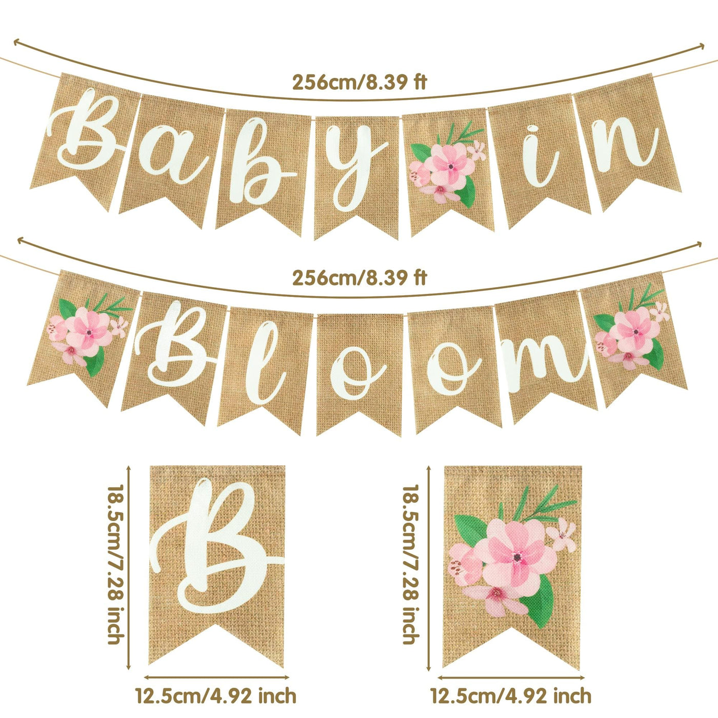 - Q: What is included in the ANGOLIO Floral Baby in Bloom Banner set? A: The ANGOLIO Floral Baby in Bloom Banner set includes two pieces of burlap banners featuring floral designs and the phrase 'Baby in Bloom', along with a rope for easy hanging.
