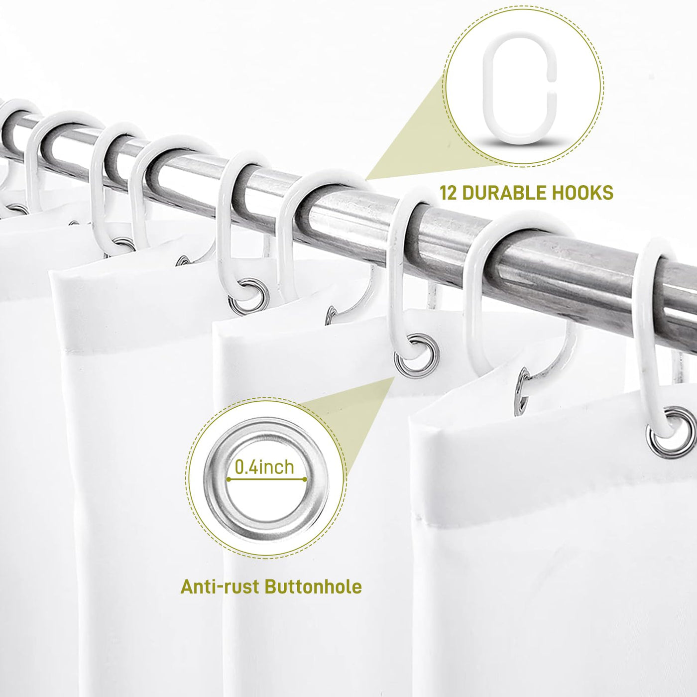 - Q: Does the shower curtain come with hooks for installation? A: Yes, the ARICHOMY Shower Curtain includes 12 plastic hooks and metal grommets for easy installation.