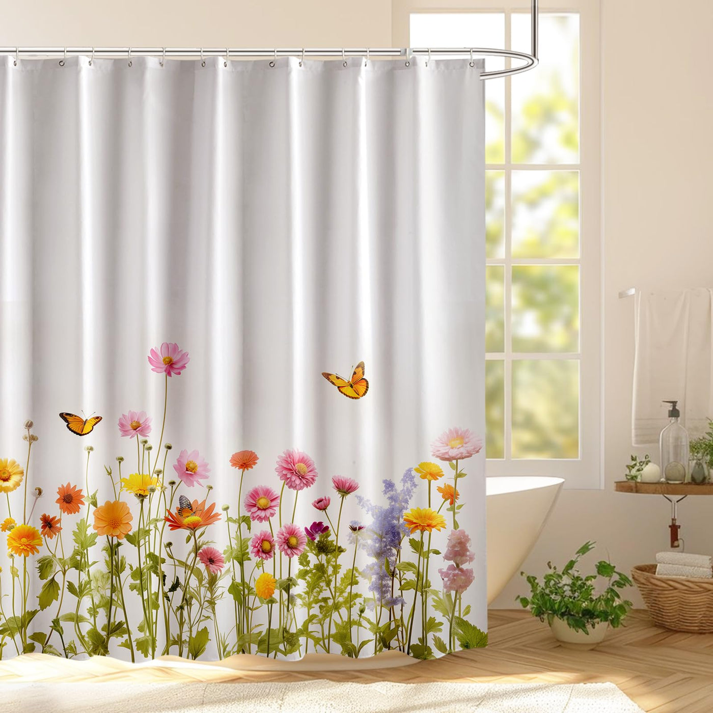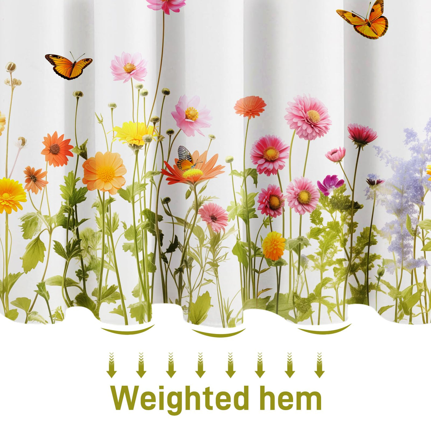 Arichomy Shower Curtain Colorful Bathroom Curtains,Floral Fabric Polyester Printed Waterproof Washable Modern Curtain Set With 1