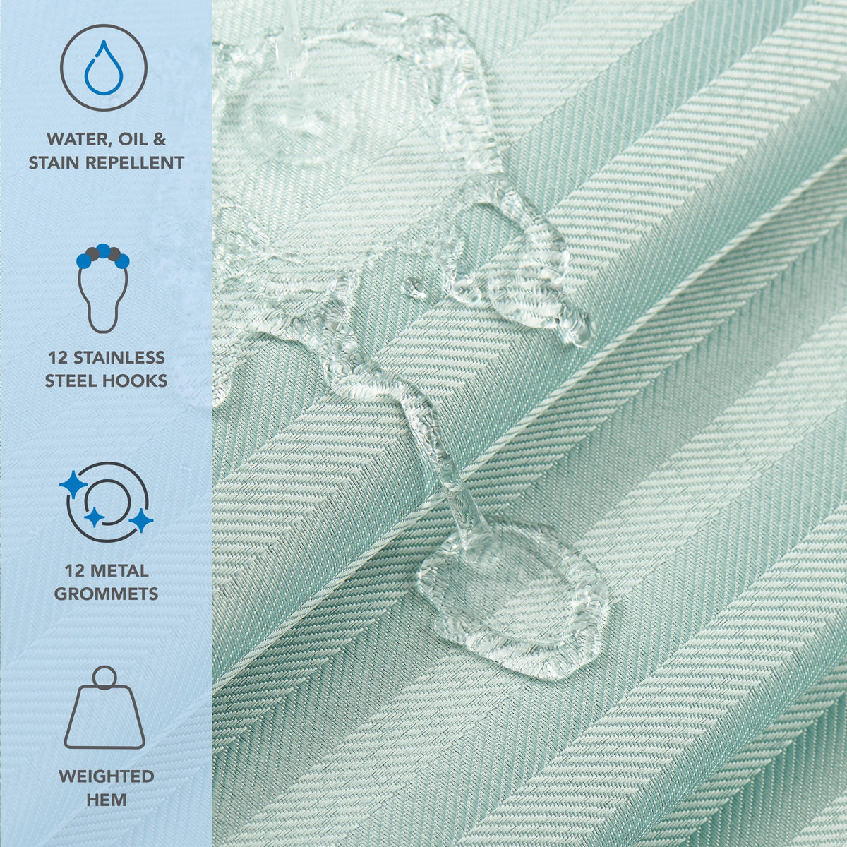 - Q: How does the fabric treatment benefit the shower curtain? A: The proprietary 'Three Proof' fabric treatment repels water, stains, and oils, helping to keep the shower curtain looking fresh and new.