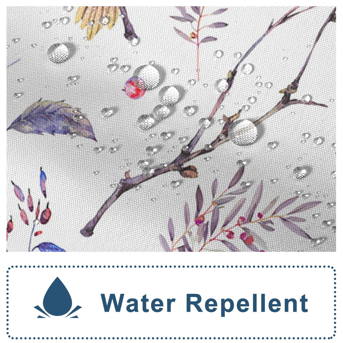 • Q: What kind of design does the shower curtain feature? A: The shower curtain features a unique and cheerful bird pattern on a tree branch, designed to add a bright and fun element to your bathroom decor.