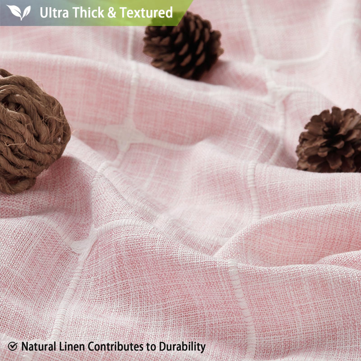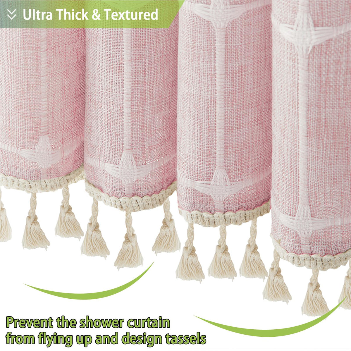 Boho Farmhouse Shower Curtain,Pink Linen Heavy Duty Cloth Fabric Woven Textured Shower Curtain Set With Tassels,Cute Modern Hote