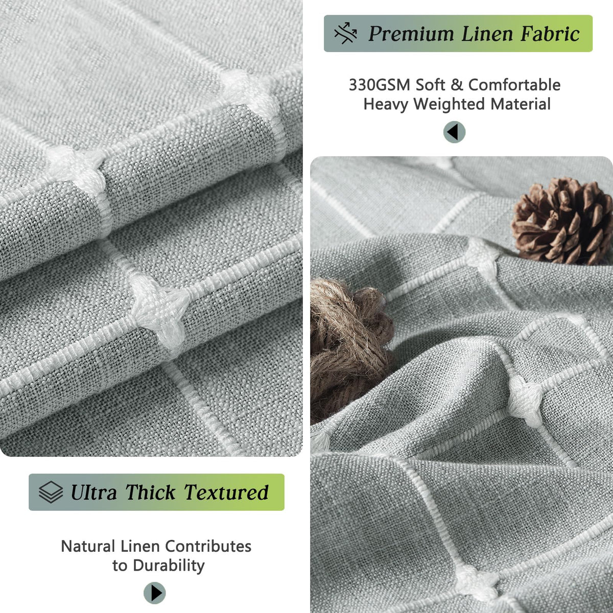 Boho Shower Curtain Farmhouse Linen Waterproof Thick Fabric Checkered Shower Curtain Set With Tassels, Modern Luxury Hotel Weigh