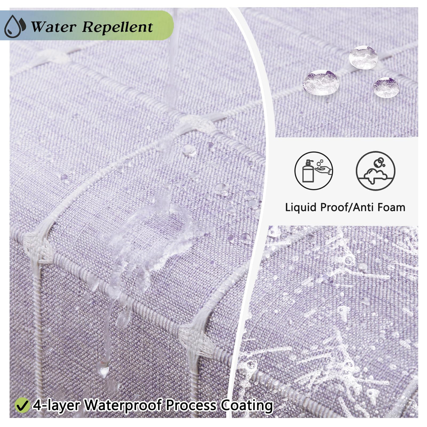 • Q: What material is the shower curtain made from? A: The shower curtain is made from a high-quality linen blend woven fabric that is extra-thick, wrinkle-free, and durable while still feeling soft.