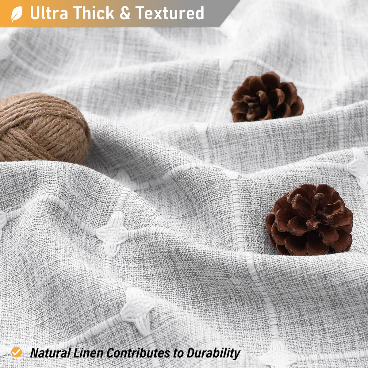 - Q: What style does the shower curtain represent? A: The shower curtain features a unique bohemian farmhouse style with a 3D embroidery plaid design and tassels on three sides.