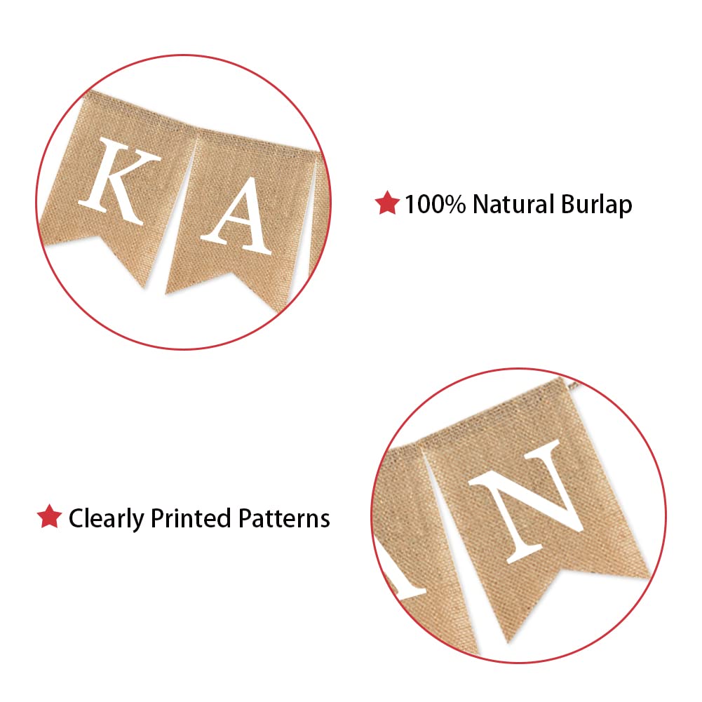 • Q: How should I care for the burlap banner? A: To care for the burlap banner, avoid exposure to excessive moisture and clean it gently with a damp cloth if needed.