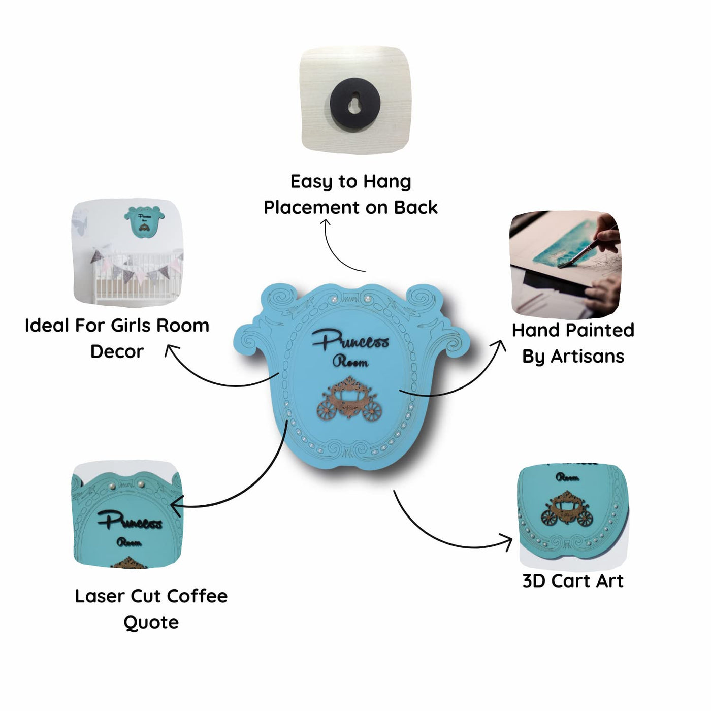 Chalk My Theme Royal Princess Room Wooden Wall Signage 14 X 11 Inches Wooden Wall Hangings Decor, Decorative Items For Girls, Bo