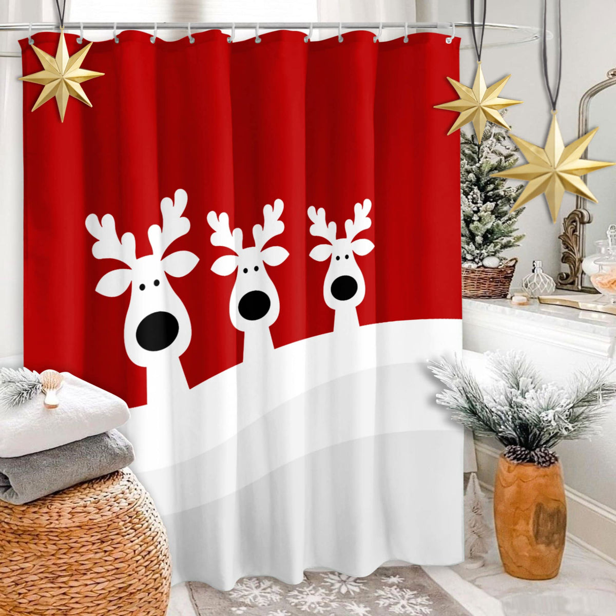 • Q: What are the decorative features of the Christmas Elk Shower Curtain? A: The shower curtain features a fun Christmas design with elk and reindeer, adding a festive touch to your bathroom decor.
