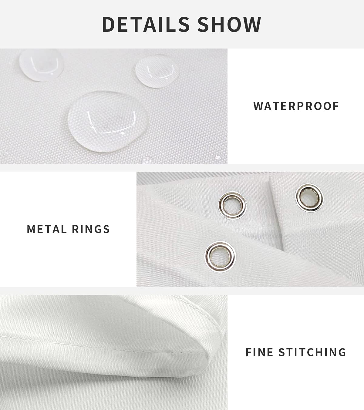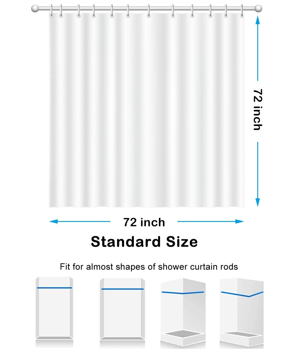 • Q: Is the shower curtain suitable for all types of bathrooms? A: Yes, the shower curtain is designed to fit standardized bathtubs and is suitable for various types of bathrooms, including kids' bathrooms and hotels.