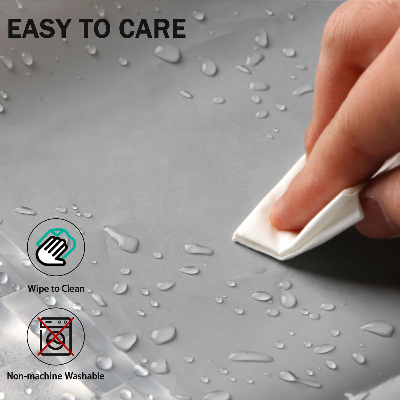- Q: How do I clean the shower curtain? A: The shower curtain can be easily cleaned by wiping it gently with a cloth. It is not machine washable.