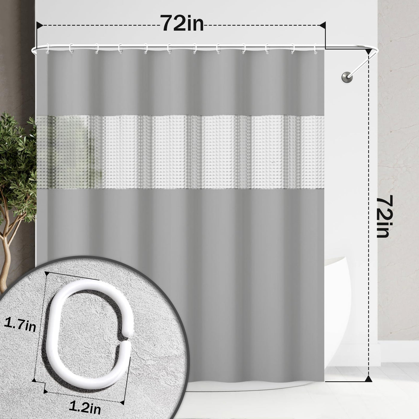 Color Block Shower Curtain, 72 X 72 Inch - Grey Shower Curtain, Plastic Waterproof Shower Curtain For Bathroom, With 12 Plastic