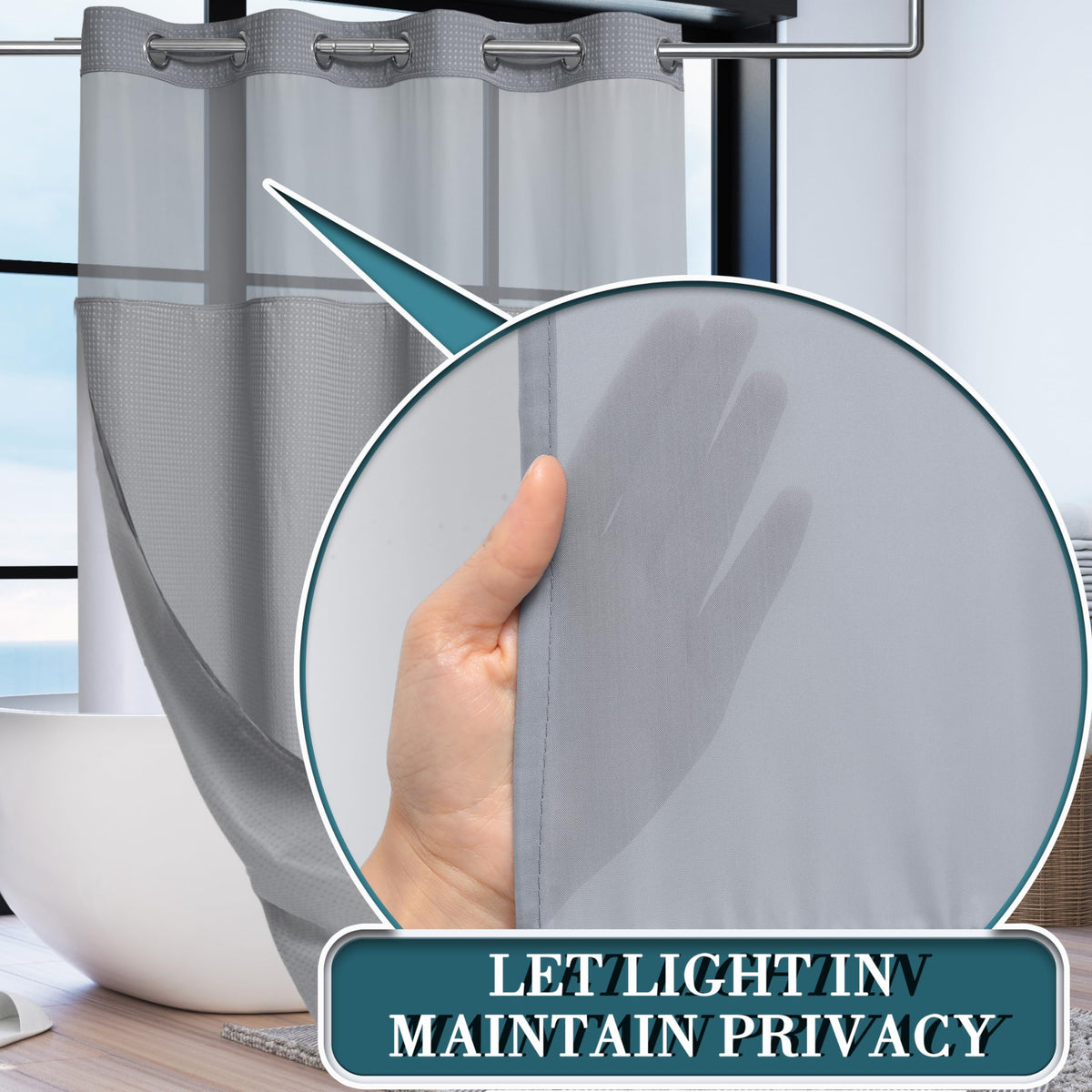 Conbo Mio Hotel Grade Fabric Shower Curtain Set With Snap In Liner For Bathroom With See Through Top Window, Waffle Weave Shower