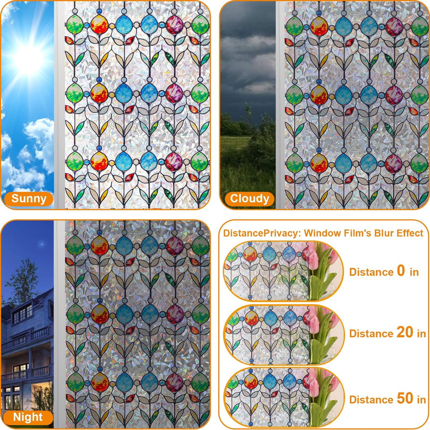 Countewol Rainbow Privacy Window Film Stained Glass Style Adhesive-Free Residue-Free Reusable Easy to Install with Tools (Rainbo