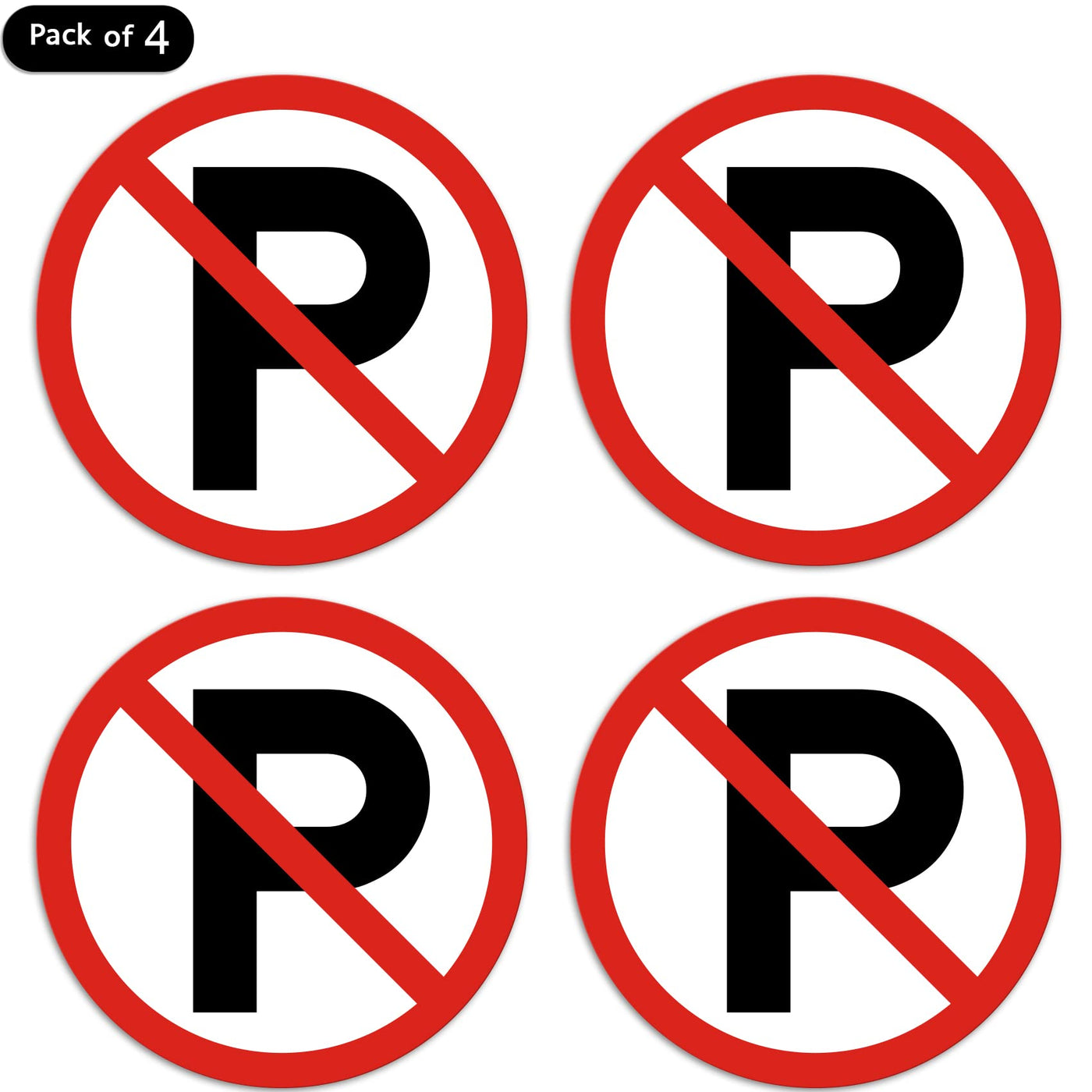dealzEpic - No Parking Sign - Self Adhesive Peel and Stick Waterproof Warning Vinyl Decal - 3.94 inches in Diameter | Pack of 4 Pcs