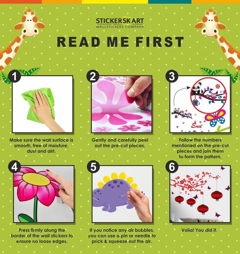 • Q: How do I apply the wall stickers? A: To apply, ensure the surface is clean, peel the stickers from the backing, and press them onto the desired area, following the design instructions provided.