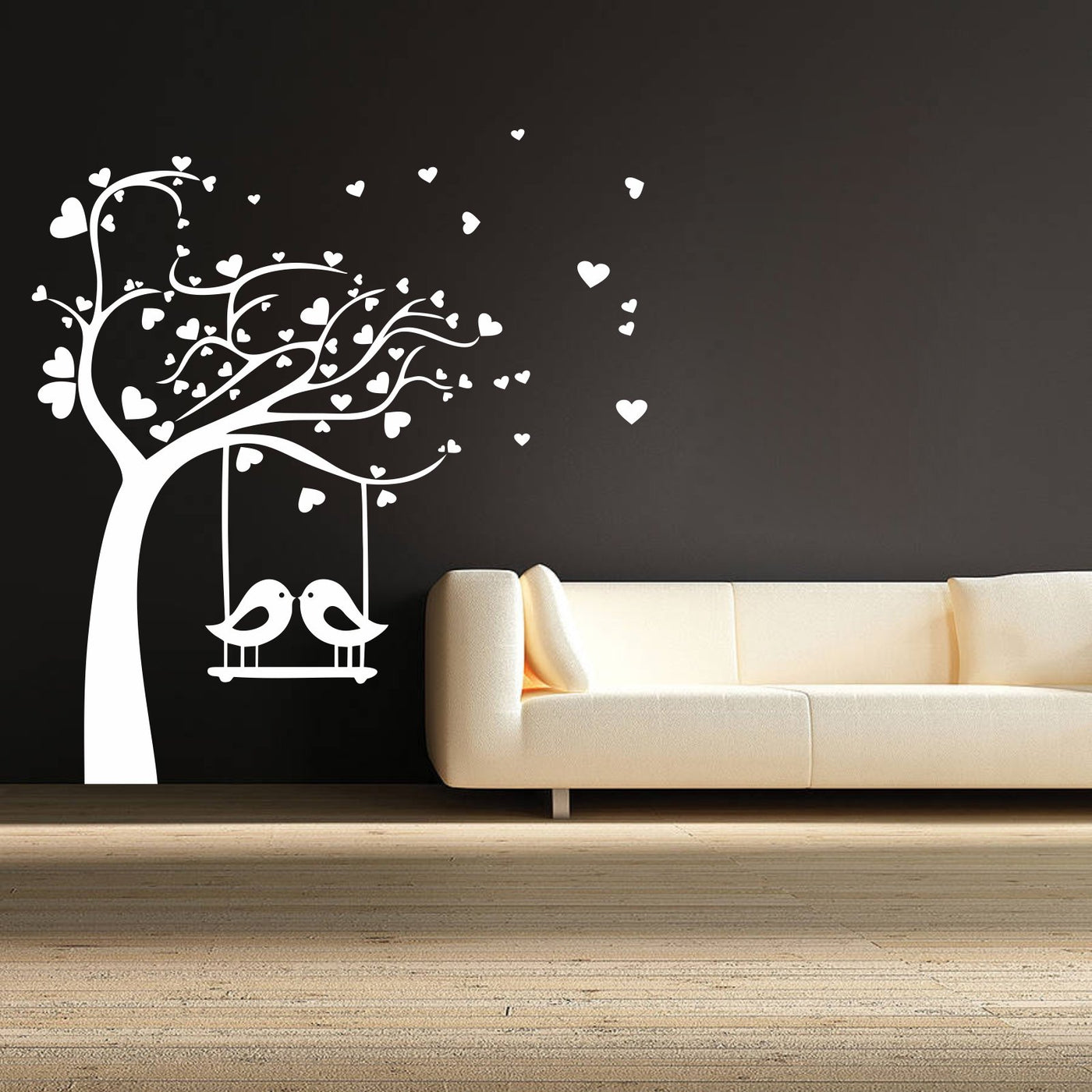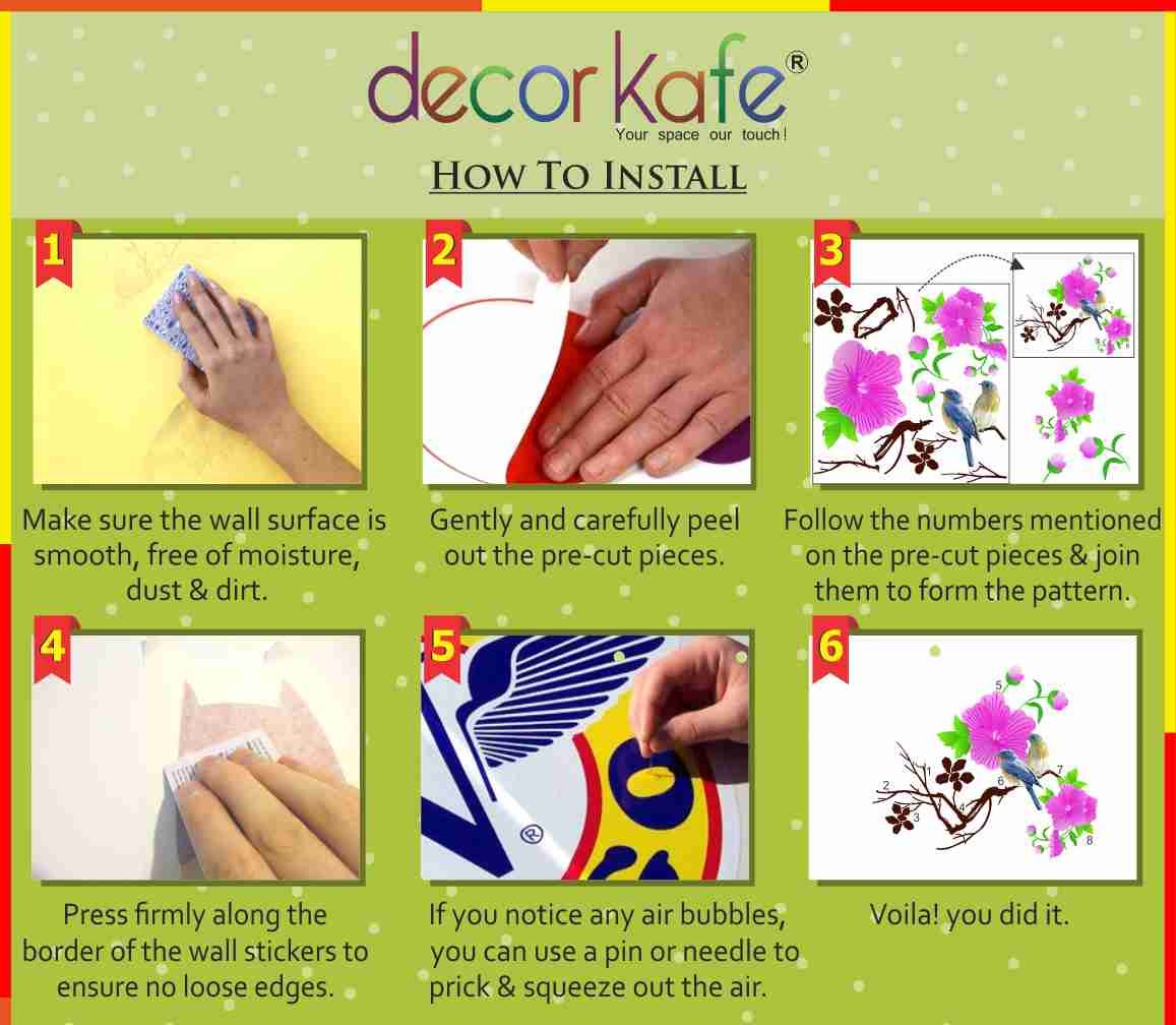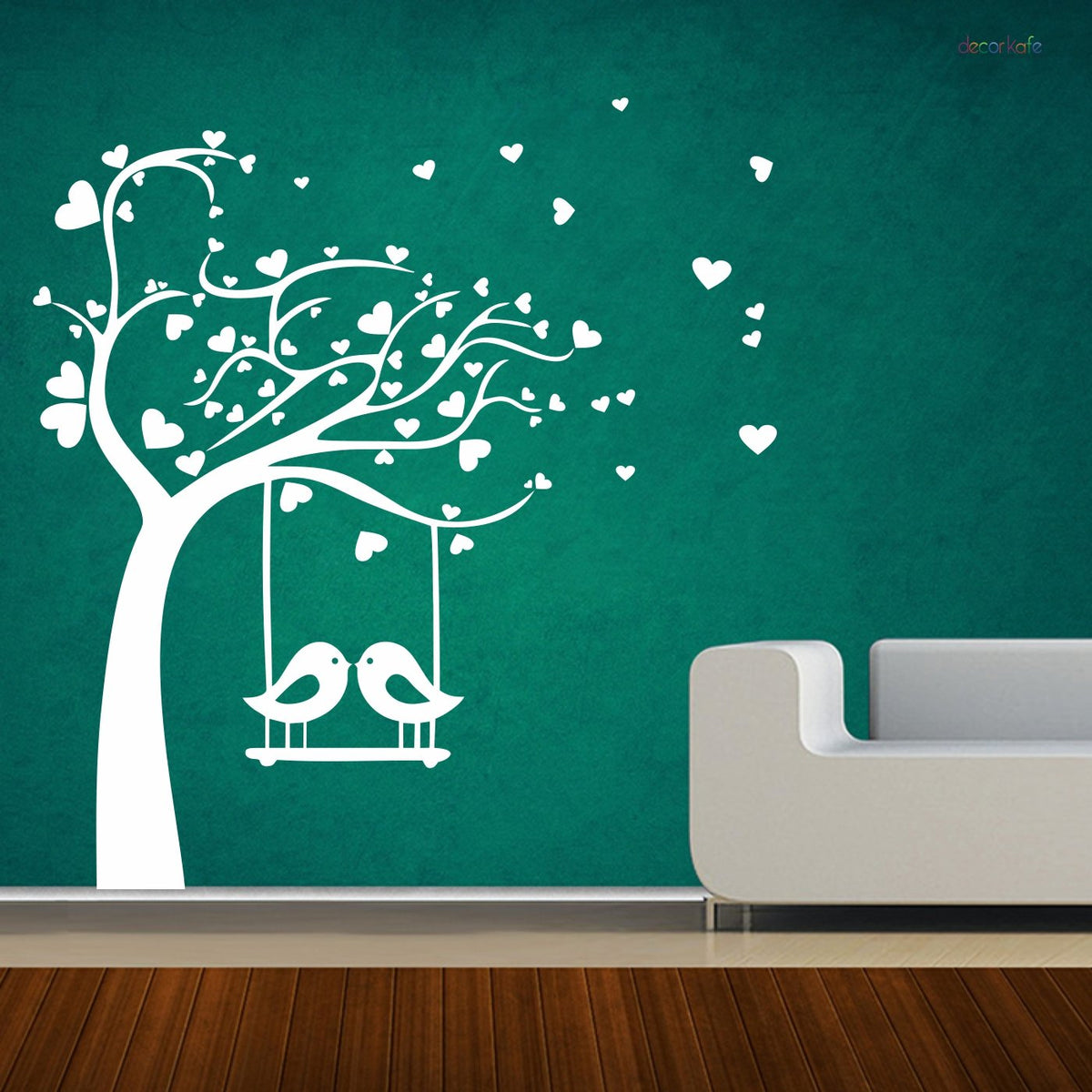 DECOR Kafe Home Decor Birds Swings on Tree Wall Sticker, Wall Sticker for Bedroom, Wall Art, Wall Poster (PVC Vinyl, 73 X 78 cm)