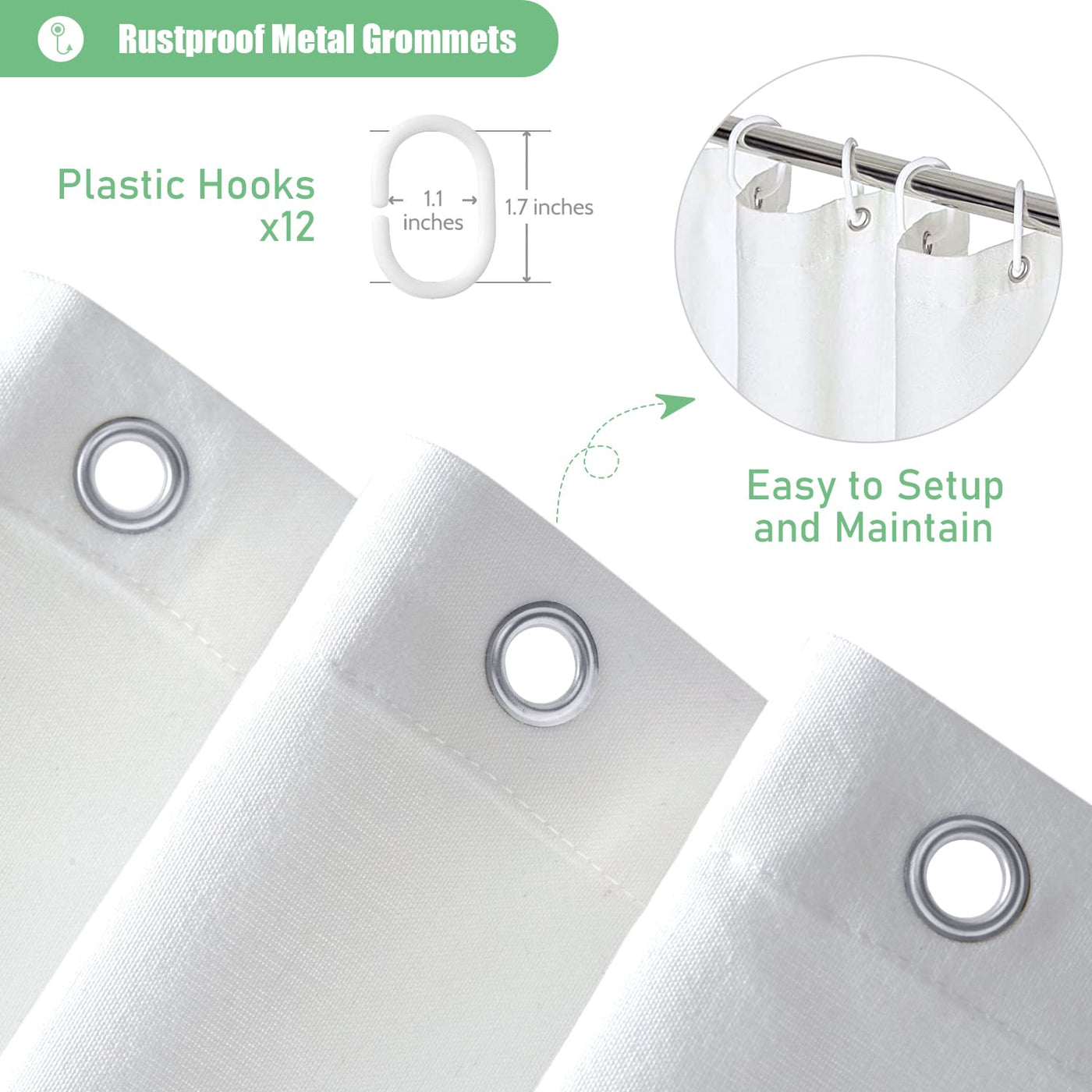 - Q: Does the shower curtain come with hooks? A: Yes, the package includes 12 rust-resistant metal hooks for easy installation.