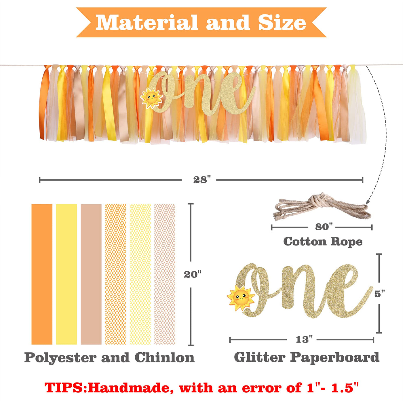 - Q: What is included in the First Trip Around the Sun Birthday Decorations? A: The set includes a highchair banner made of gold onion cardboard, quality American tulle, environmental protection webbing, and cotton rope.