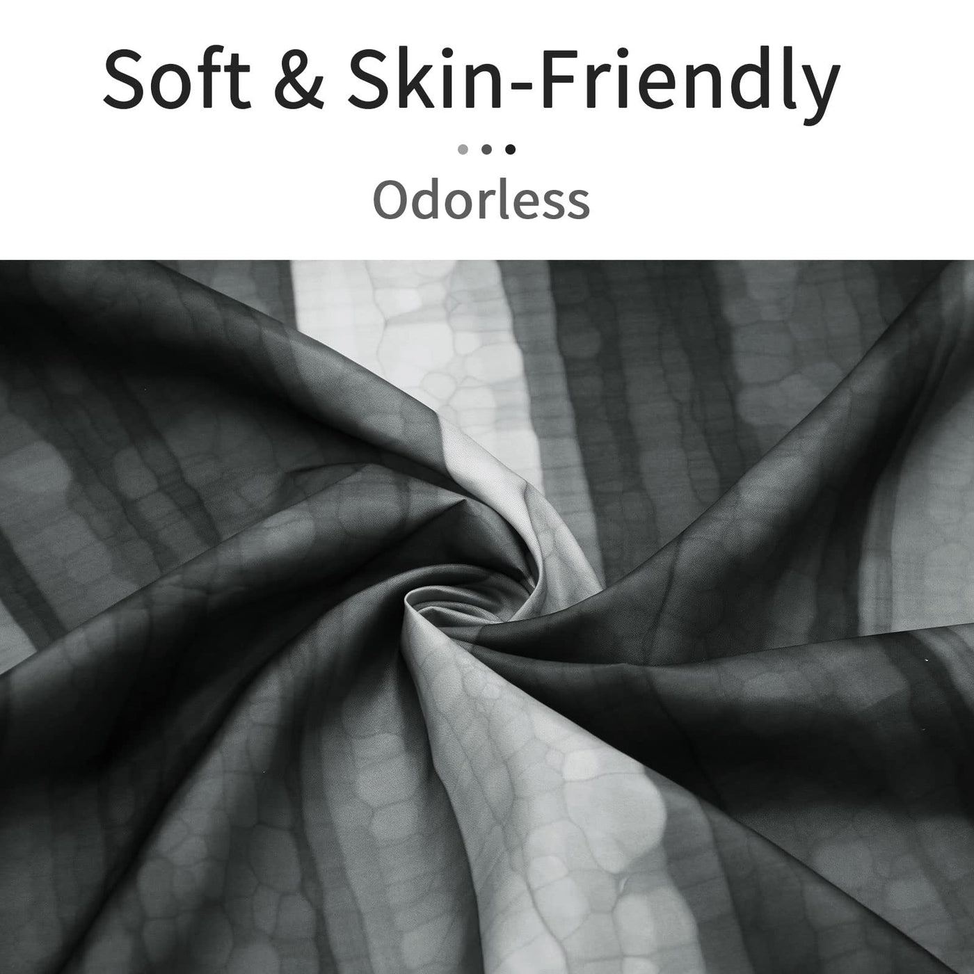 - Q: What is the design of the shower curtain like? A: The shower curtain features an abstract modern design with a cool glass texture ombre effect.