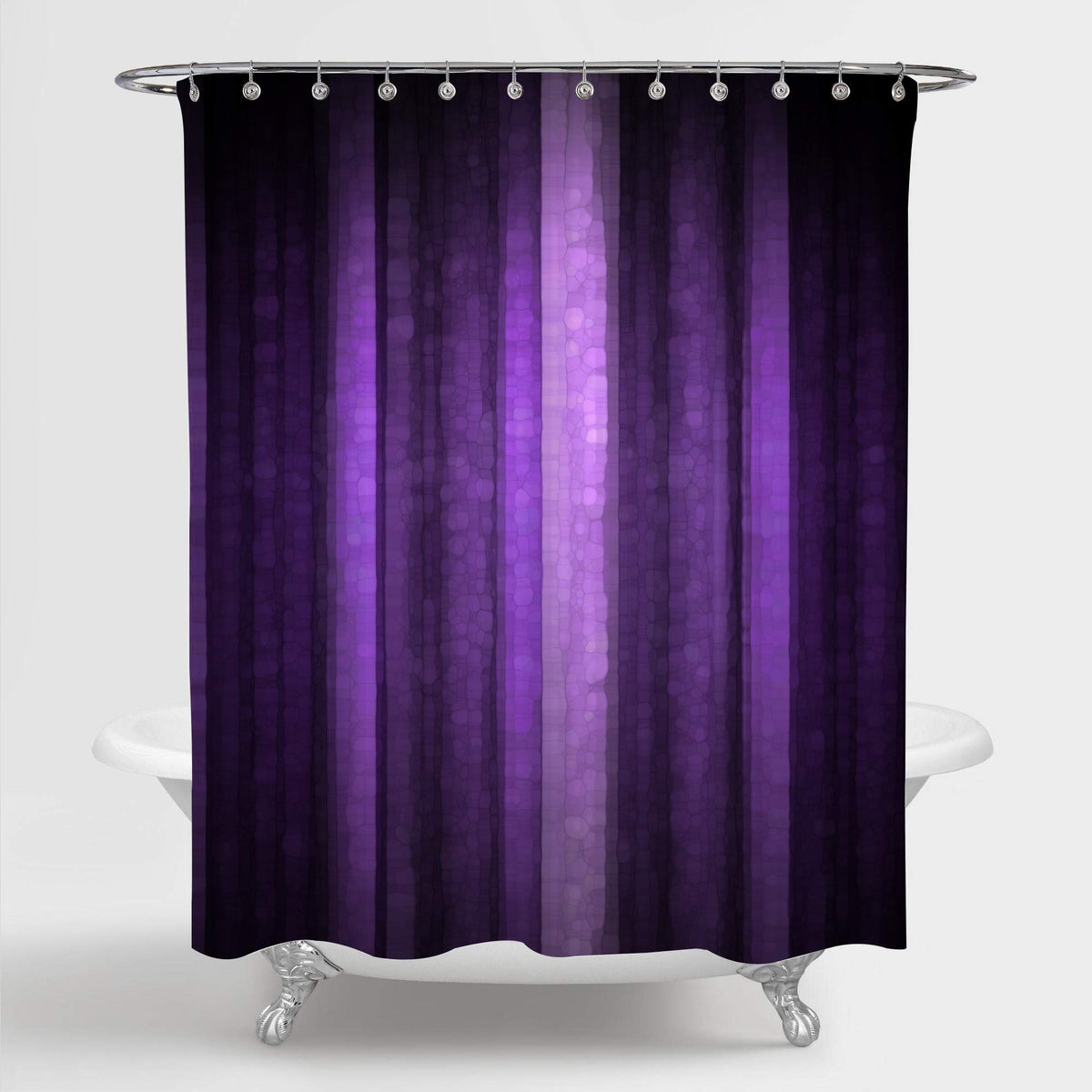 Gibelle Purple Striped Shower Curtain, Abstract Mosaic Glass Texture And Dark Stripe Shower Curtains, Modern Elegant Neon Purple