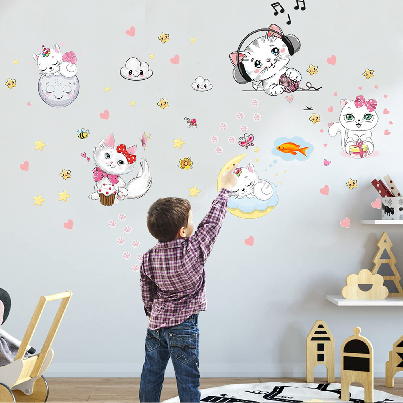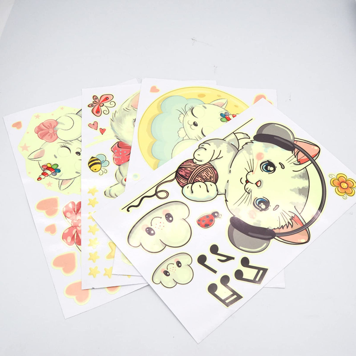Glow In The Dark Stars For Room,Cats Glowing Wall/Ceiling Decals, Kitten Butterflies Stickers For Kids Bedroom, Clouds Bees Lumi