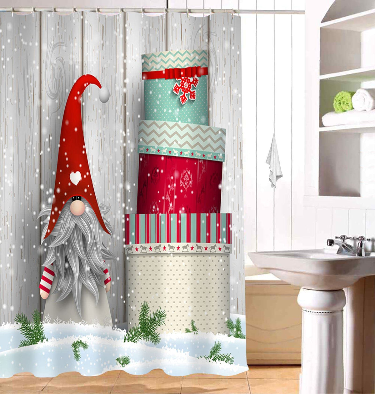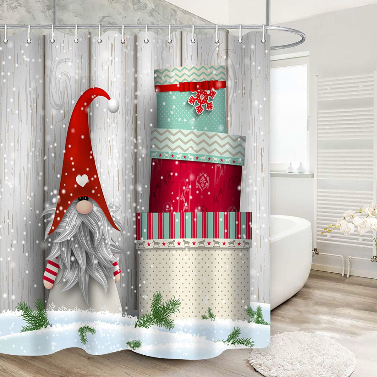 - Q: What design features does the Gnome Shower Curtain have? A: The curtain features vibrant, seasonal patterns showcasing cute Christmas gnomes and winter themes, adding a festive ambiance to your bathroom.