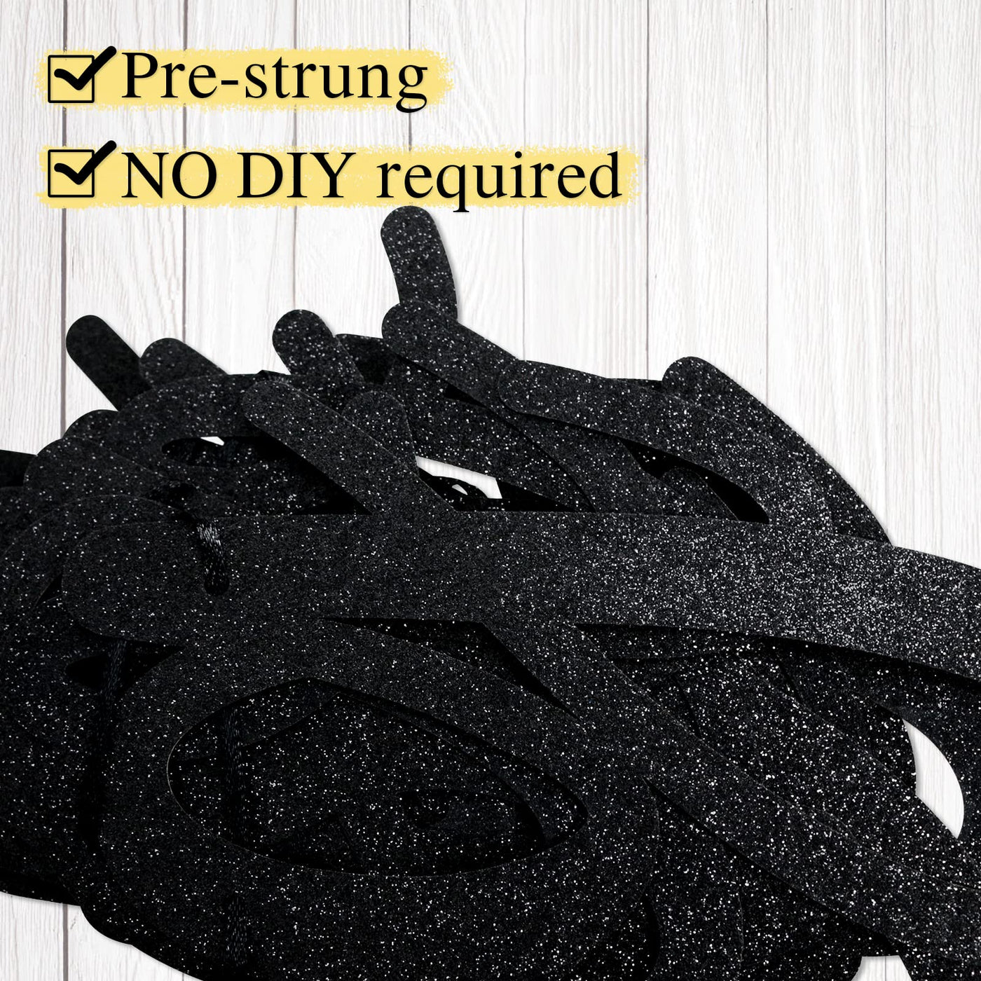• Q: What material is the banner made from? A: The banner is made from shiny black glitter cardstock, providing a quality backdrop for your birthday party photos.