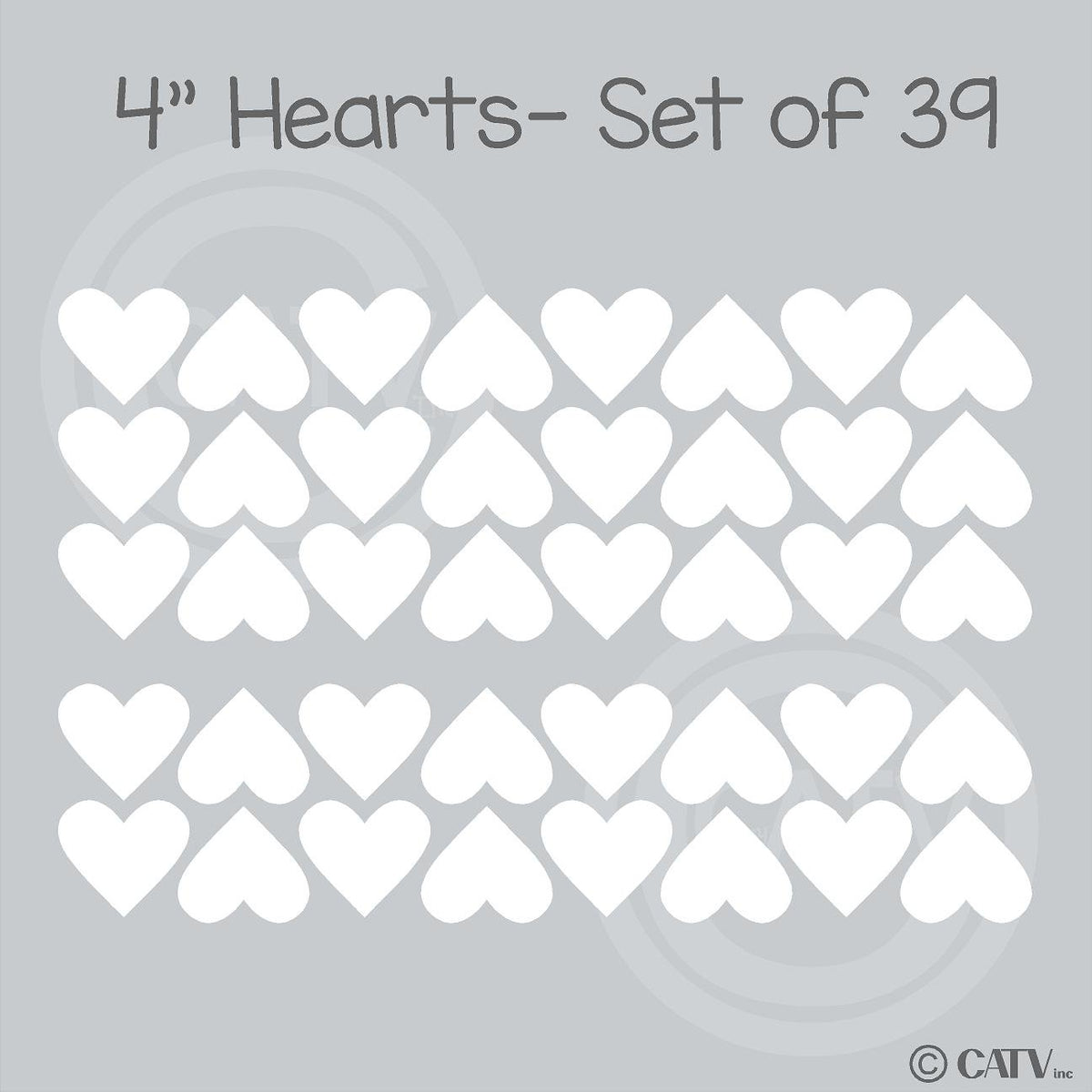 Hearts 4'' Set Of 39 Wall Pattern Decal Vinyl Stickers (White)