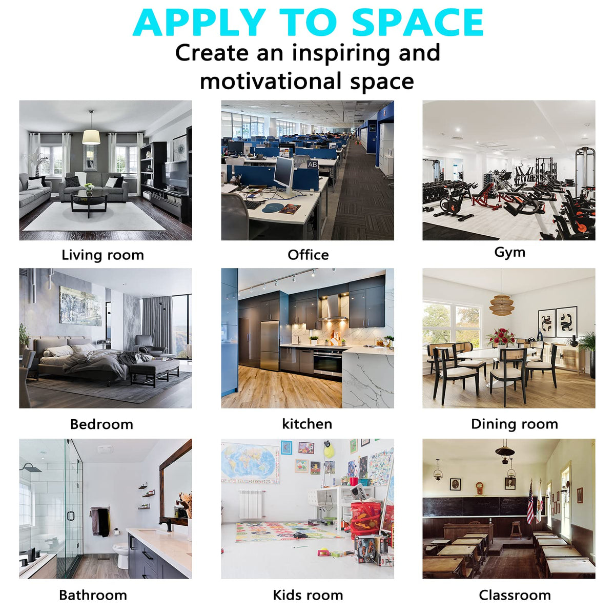 - Q: What makes these wall decals motivational? A: The Inspirational Wall Stickers feature motivational quotes designed to inspire and encourage positivity in spaces such as offices, bedrooms, classrooms, and gyms.