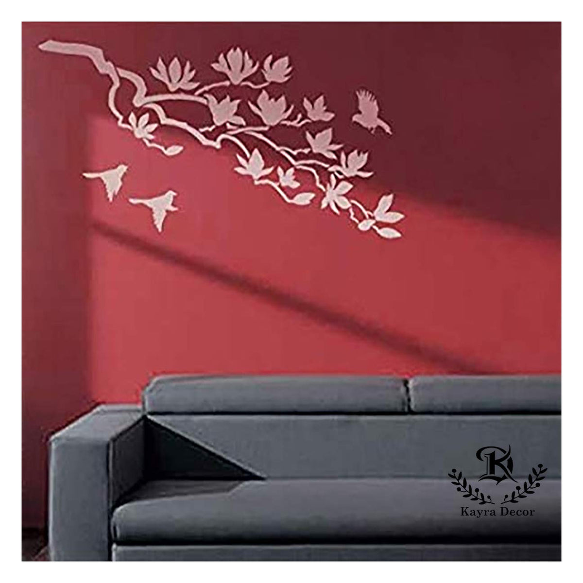 Kayra Decor Stencils For Wall Painting Large Size Tree Branch And The Birds Flower (72 X 36 Inch) (Khsnt231)
