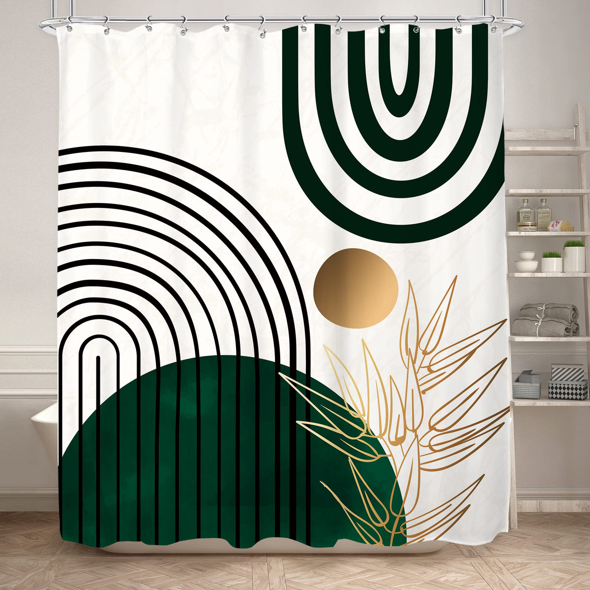 KOMLLEX Green Chic Abstract Shower Curtain for Bathroom Decor 60Wx72H Inches Boho Leaves Tropical Mid Century Simple Minimalist Fancy Modern Fabric Waterproof Polyester 12 Pack Hooks