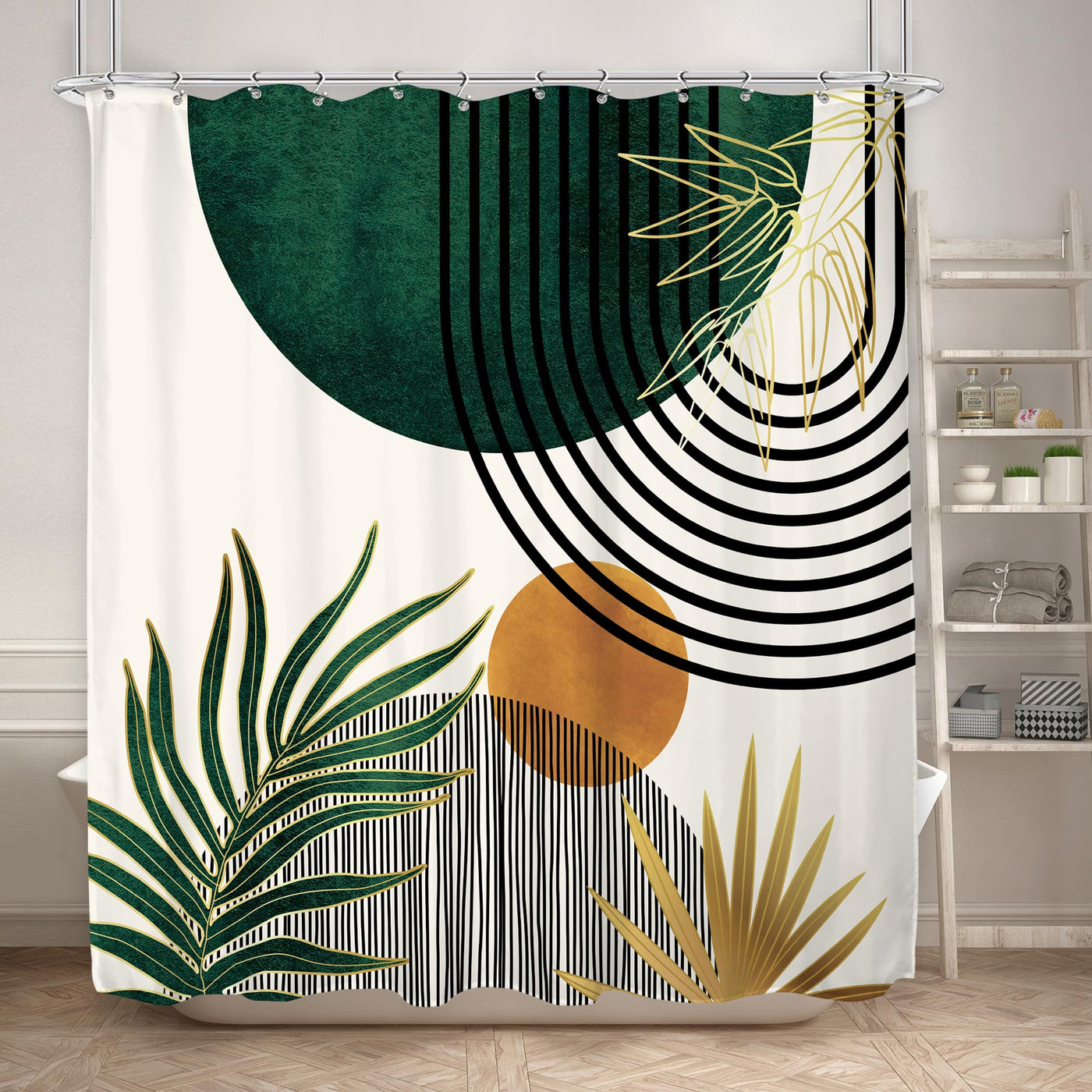 Komllex Mid Century Boho Shower Curtain For Bathroom Decor Abstract Modern Sun Minimalist Aesthetic Arch Curve Leaves Geometric