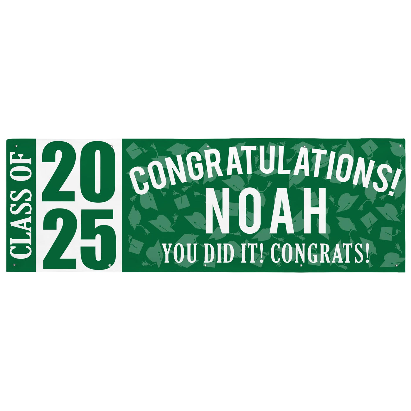 - Q: Can I customize the banner with my graduate's name? A: Yes, you can personalize the banner with any name up to 12 characters, along with their graduation year and a message of pride and encouragement up to 40 characters.