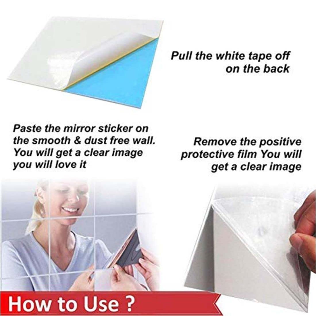 Meraki Mart Wall Stickers Square Non Glass 3D Acrylic Mirror Self Adhesive DIY Snake Tiles Wall Design Decor Art for Home, Bedro