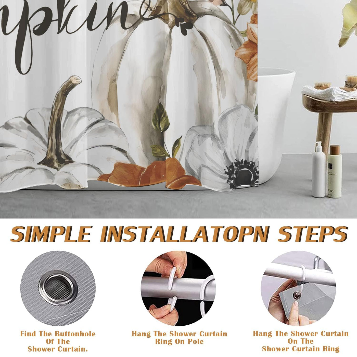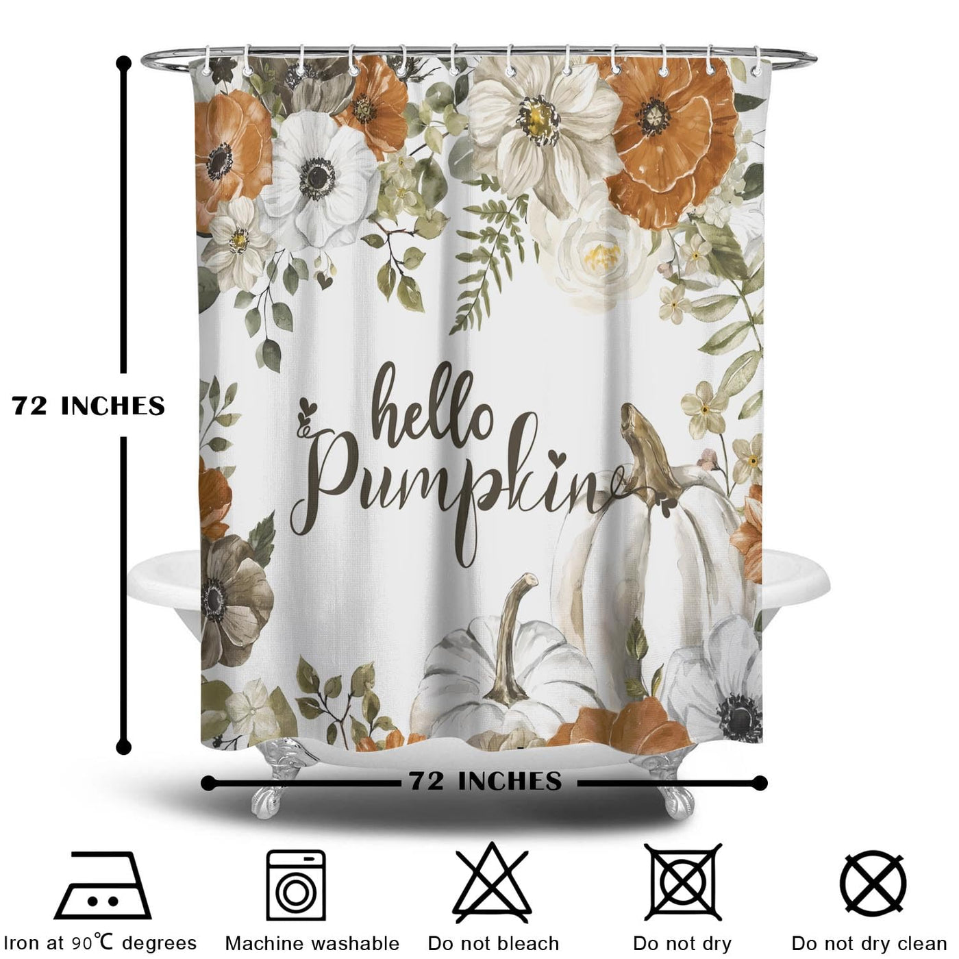 Mloabuc Hello Fall Flower Pumpkins Shower Curtain 72X72Inch, Autumn Plants On White Fall Shower Decor, Nature Print Decor Waterp