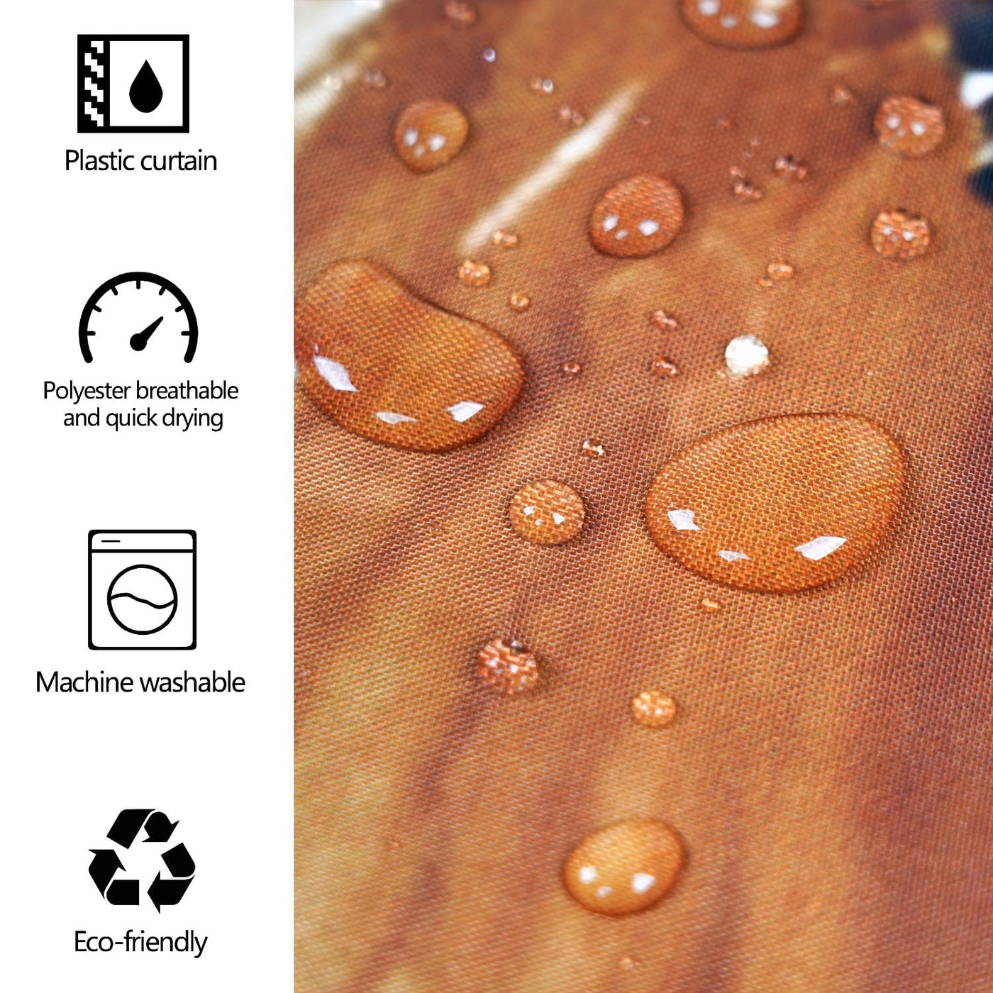 - Q: Is the fabric of this shower curtain waterproof? A: Yes, the shower curtain is made from 100% polyester fabric, which is water-resistant and designed to keep your bathroom dry.