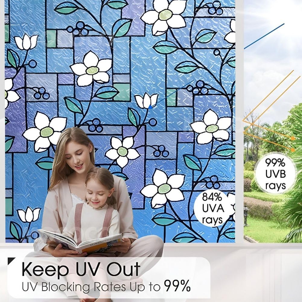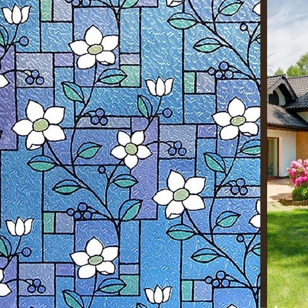 Mococo Sea Blue Privacy Window Film Frosting Film Window Sticker Frosted Vinyl Sheets For Front Door Bathroom Sidelight Small Wi