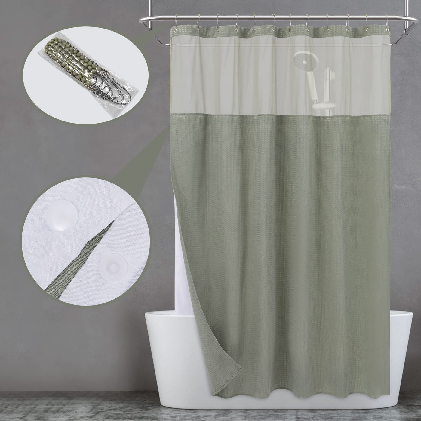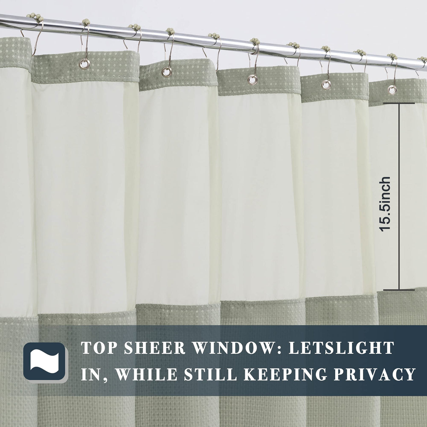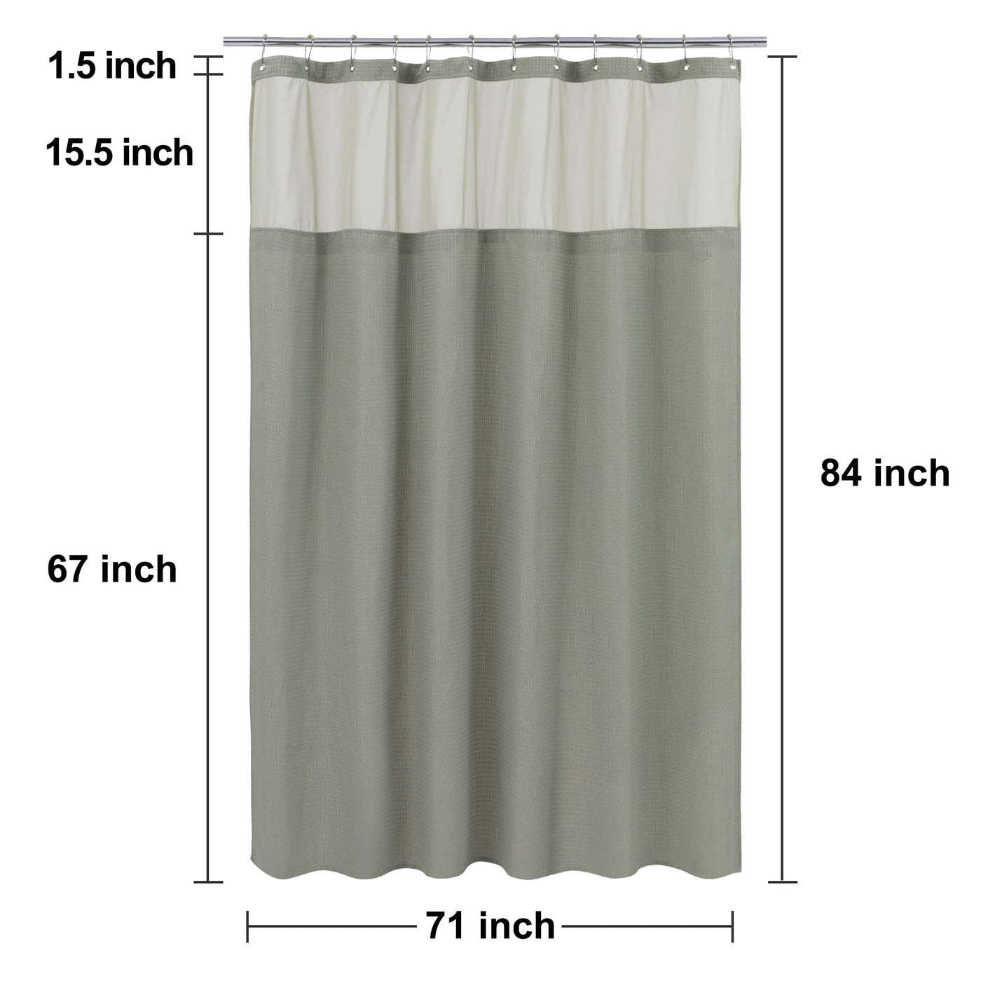 N&Y Home Extra Long Waffle Weave Shower Curtain With Snap-In Fabric Liner & Hooks Set - 71'' X 84'', Hotel Style & Mesh Top Wind