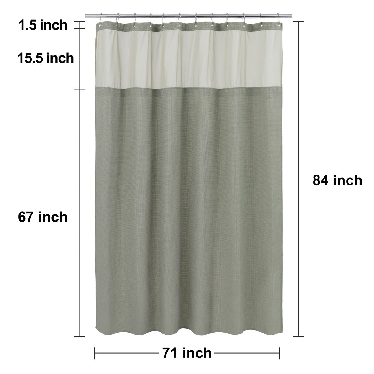 - Q: What are the dimensions of the N&Y HOME Extra Long Waffle Weave Shower Curtain? A: The dimensions of the shower curtain are 71 inches wide by 84 inches long.