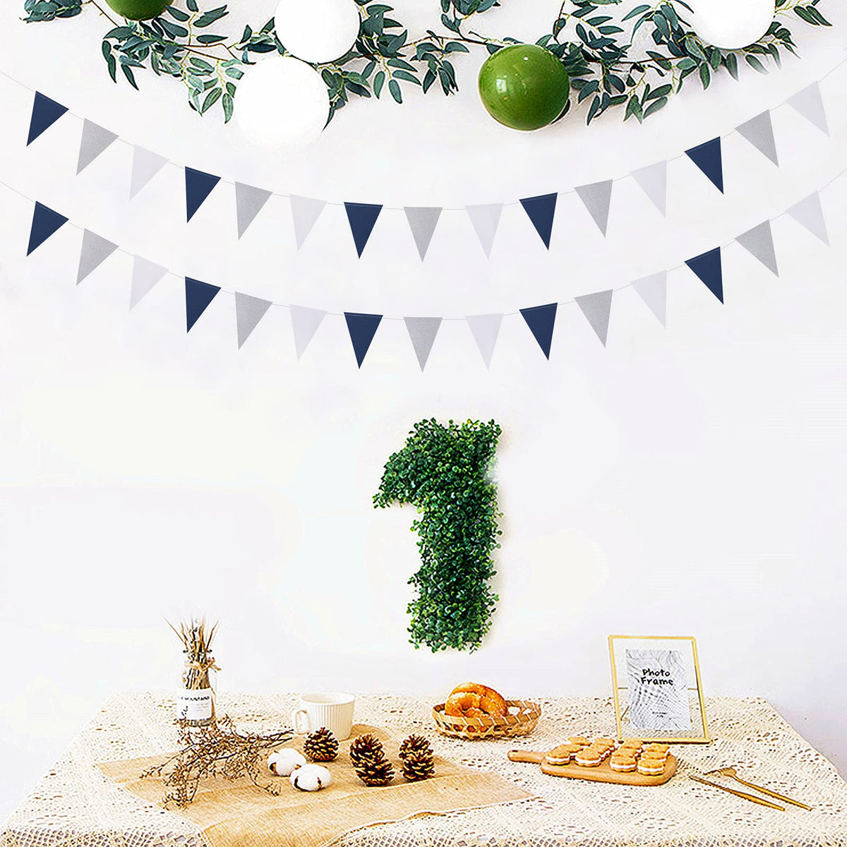 - Q: What is included in the package? A: The package includes two paper garlands, each measuring approximately 3.7 inches wide and 5.7 inches long, totaling 8.5 feet long with 15 glitter triangle flags.