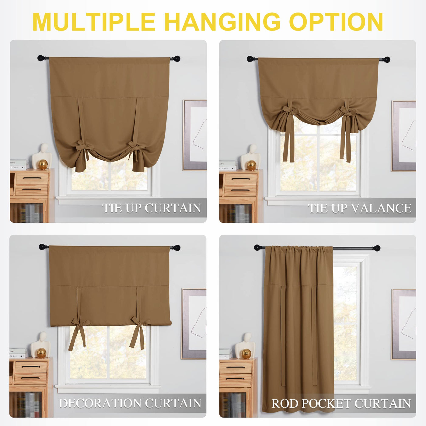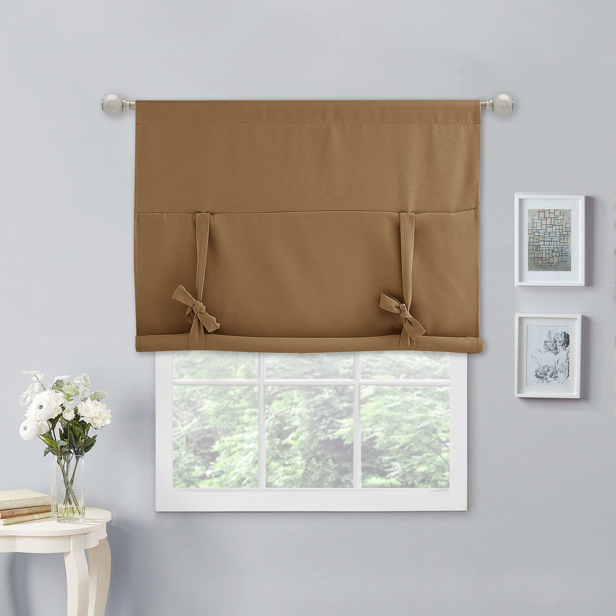 Ready Made: Package includes 1 panel Tie Up Shade with 40 width x 54 length (102cm x 137cm), same color as front. 3 pocket fits various standard or decorative curtain rod/pole. | Serve Well: Tie up the shades to let in more natural light and enhance the look of your windows or untie, for more coverage and privacy. Curtains impede 85%-99% light and UV rays (dark color curtains work well). | Easy Adjust: Tie up shade(ties begin a little down the curtain but only about a 1/4) can be tied to the point of the connecting seam, and can be adjusted to the height you desire. | Home Decoration: The sophisticated designs allow you to decorate your windows with great styles, perfect for the small window in the kitchen, bathroom, living room and bedroom. | Easy To Maintain: NICETOWN blackout curtains are made to last. Machine washable in cold water, tumble dry. Quick ironing or steam clean when needed. Visiting the NICETOWN store, find out favorite curtains.