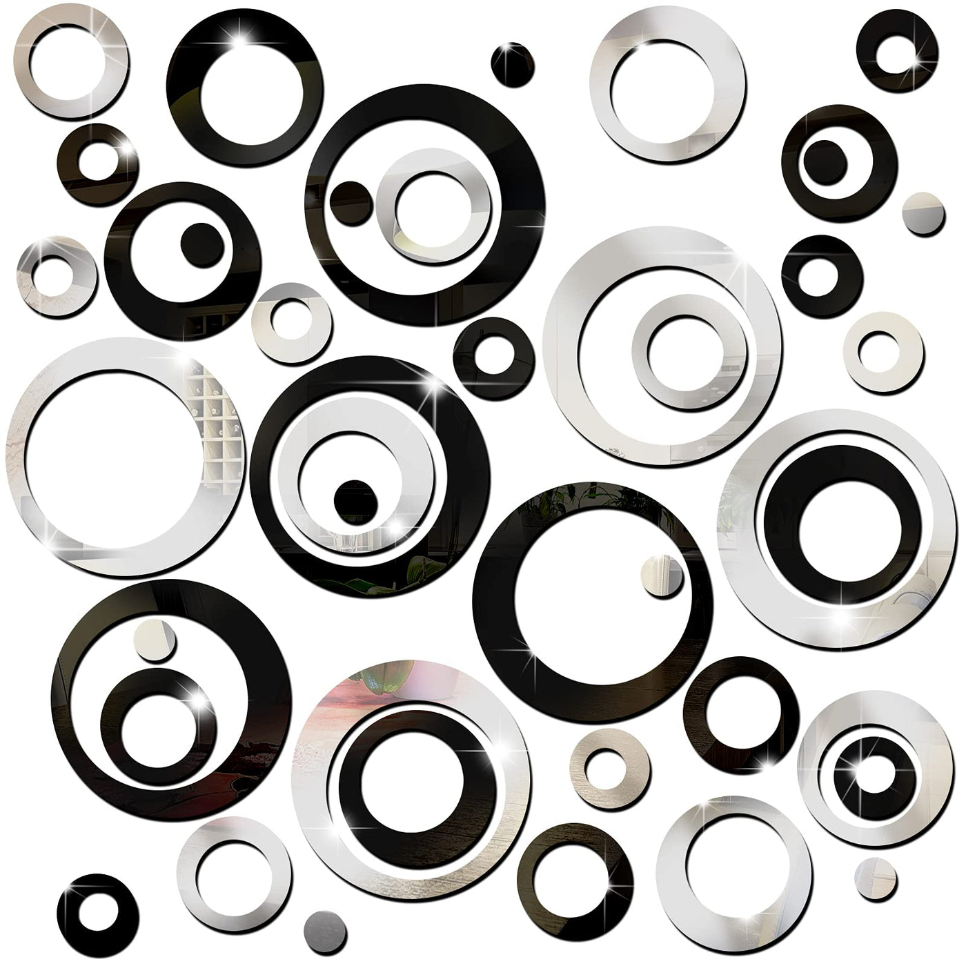- Q: How many pieces are included in the package? A: The package includes a total of 72 mirror wall decal stickers.