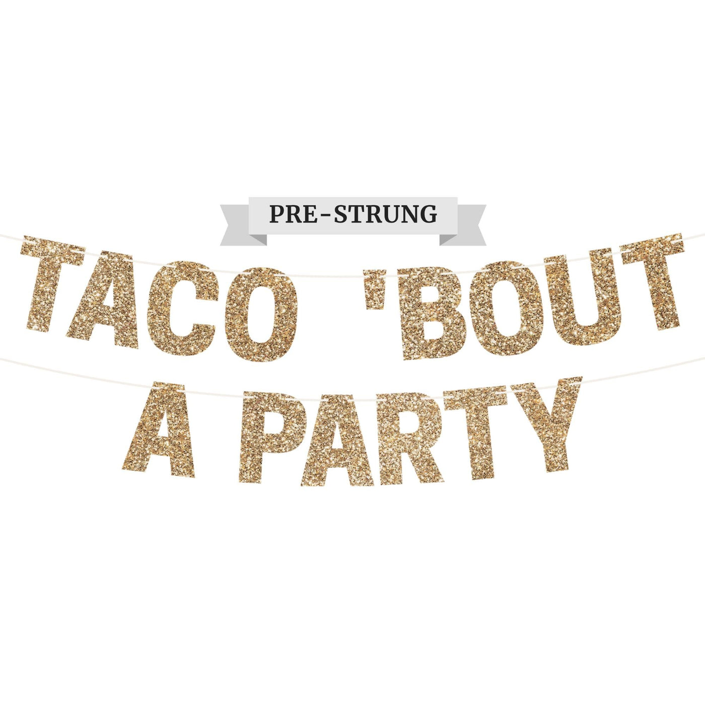 - Q: What is included with the Pre-strung Taco Bout A Party Banner? A: The Pre-strung Taco Bout A Party Banner comes fully assembled with each letter pre-strung on an 8 ft strand, ready to hang without any DIY assembly required.