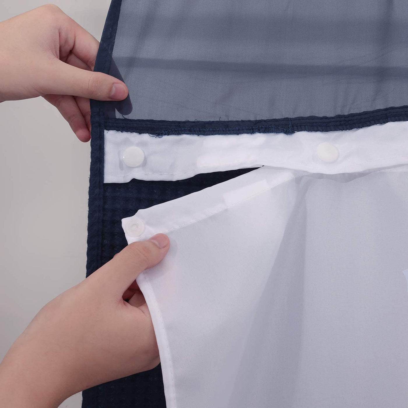 River Dream Navy Blue Fabric Shower Curtain Set, Cotton Blend, Waffle Weave, With Snap In Replacement Liner,54 X 80Inches
